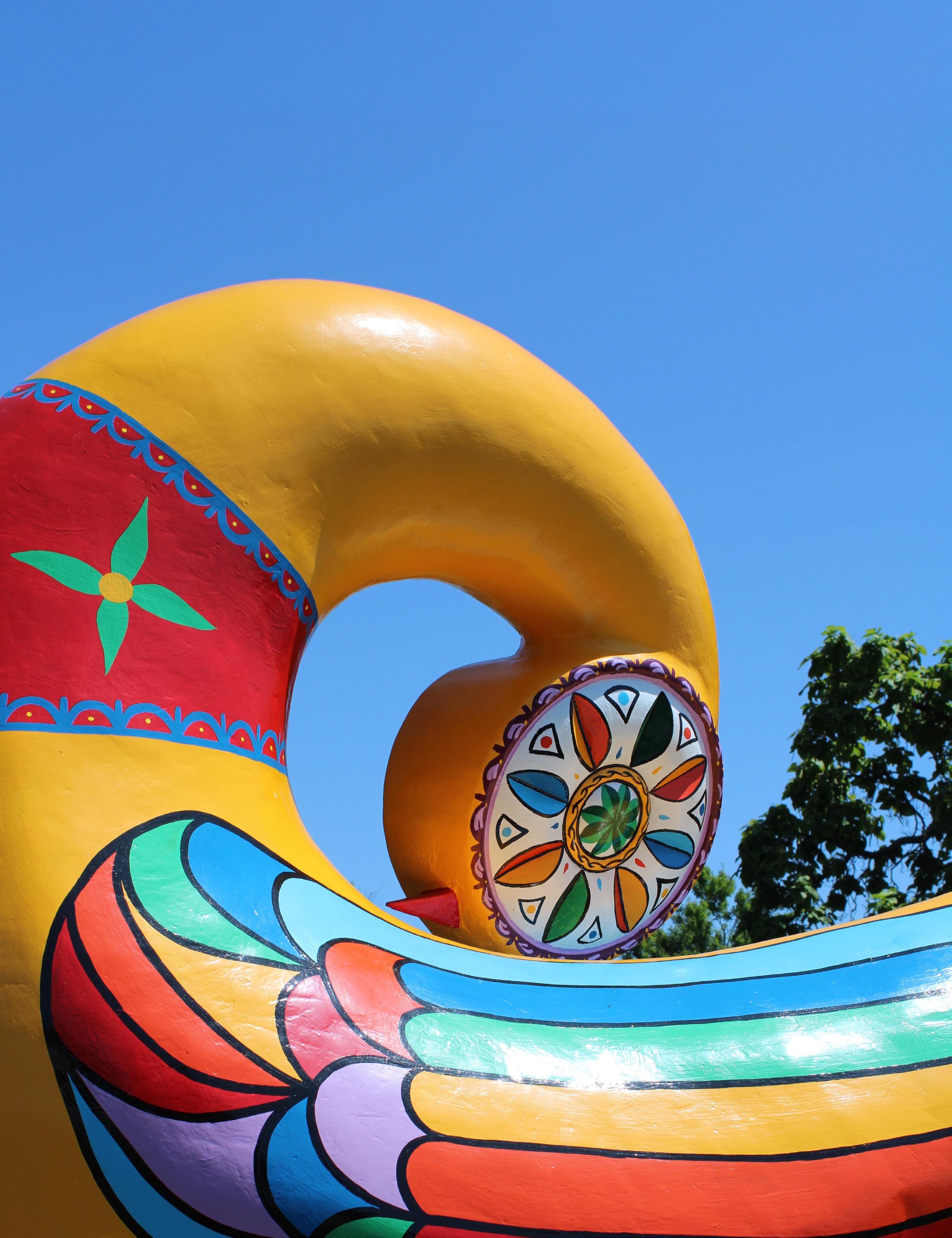 Claypoole, quien creció inmerso en el arte popular holandés de Pensilvania, volvió a pintar el Distelfink por primera vez en 2016. El pasado mes de mayo, volvió a ser llamado para dar nueva vida a la escultura de seis pies de alto y doce pies de largo. “Se había decolorado con el paso del tiempo y empezaba a crecer musgo en la superficie», explicó Claypoole. «Lo limpié todo, le di una capa base blanca y empezamos de cero. Nos llevó varios fines de semana y mucha pintura, pero fue un trabajo divertido”.