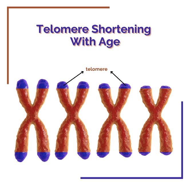 However, before we look to increase our longevity, we must consider why we age. Modern-day research suggests a multitude of possible causes and explanations for why we age. Of these causes, the most prominent is the shortening of telomeres, which are DNA-protein structures located at the ends of chromosomes. Telomeres are primarily responsible for preserving chromosomal stability and preventing chromosomal degradation. In our bodies, cells continuously undergo the cell cycle throughout our lives, dividing and replicating themselves so the body can develop and repair itself. With each cell division, a small part of each telomere is lost until the telomeres are too short to protect the DNA on their chromosomes, resulting in DNA damage. When this point is reached, cells undergo either senescence (cells can no longer divide or grow) or apoptosis (programmed cell death).