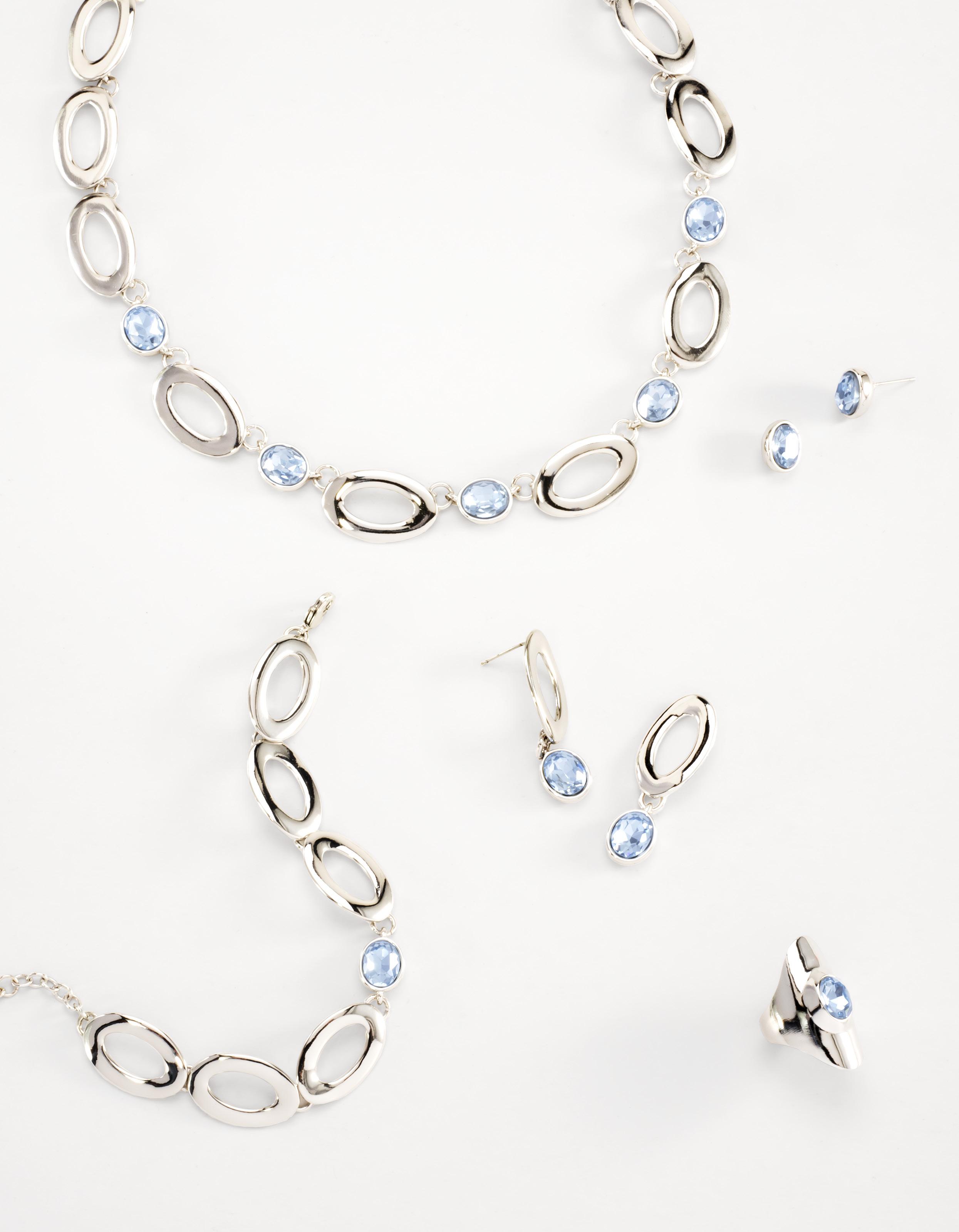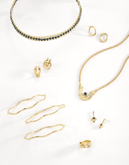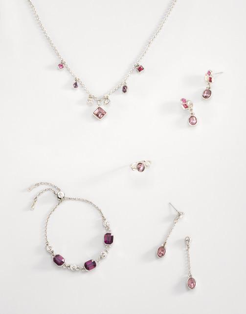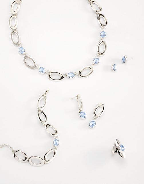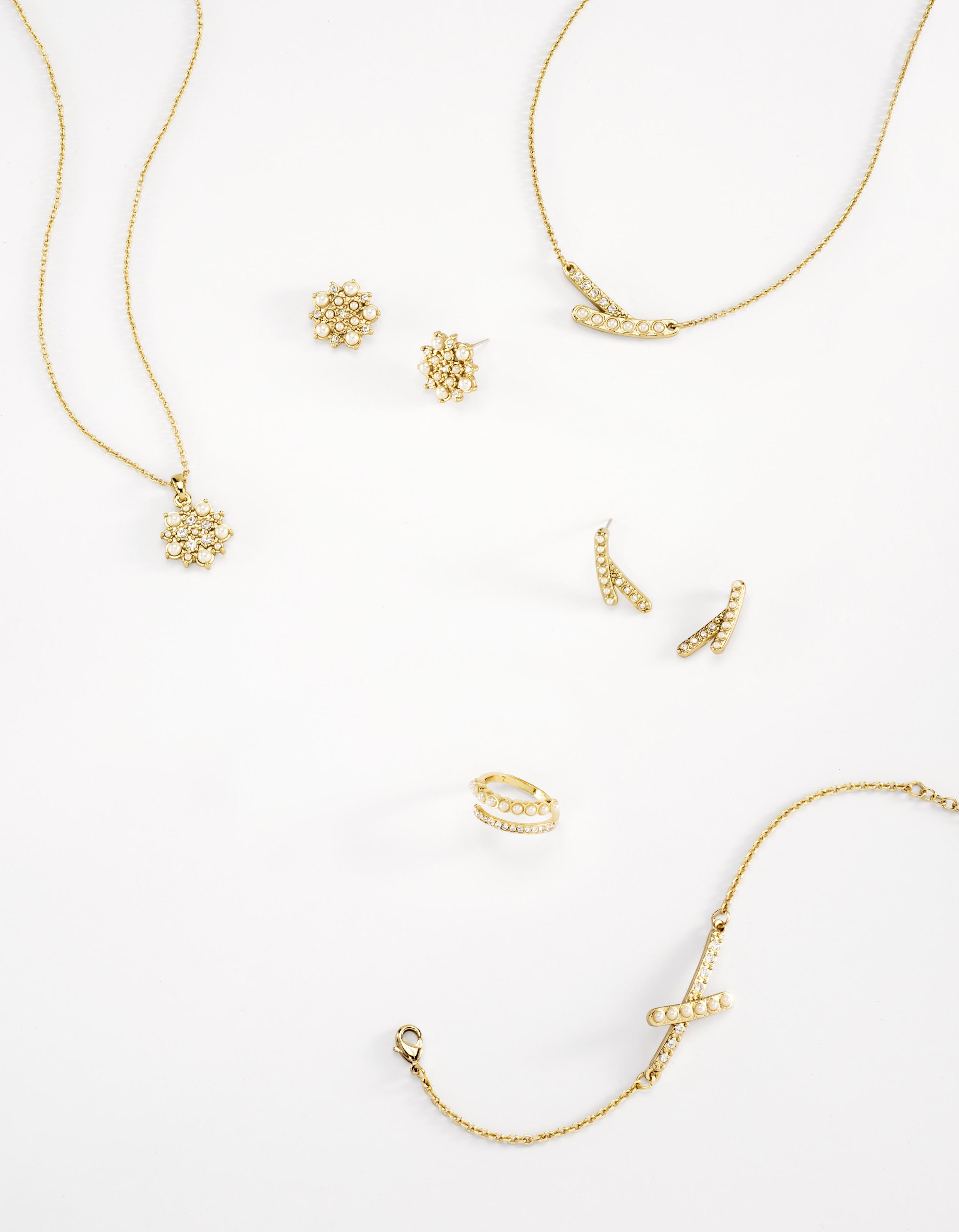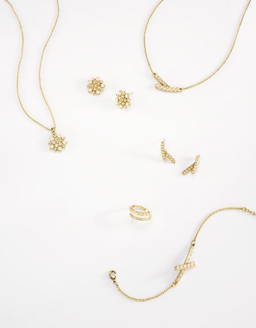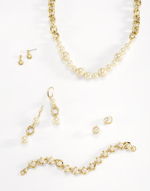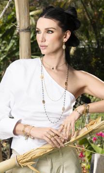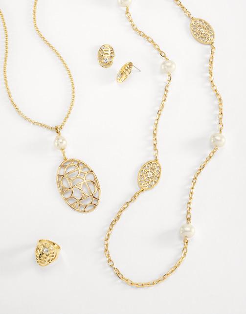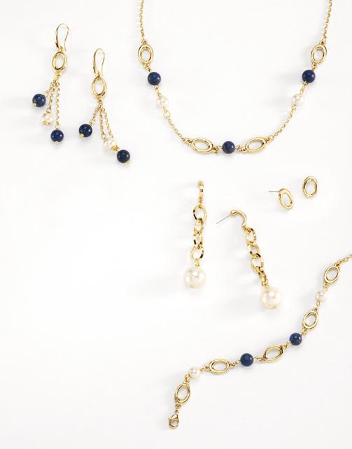 Crystal stones and/or Nicestone / Piedras de cristal y/o Diamonice. Gold, rhodium, platinum or cobalt plated jewerly / Joyería con 4 baños de oro de 18 kilates, platino o cobalto. *Stones and pearls may vary in color / *El tono del color de las piedras o perlas puede variar.