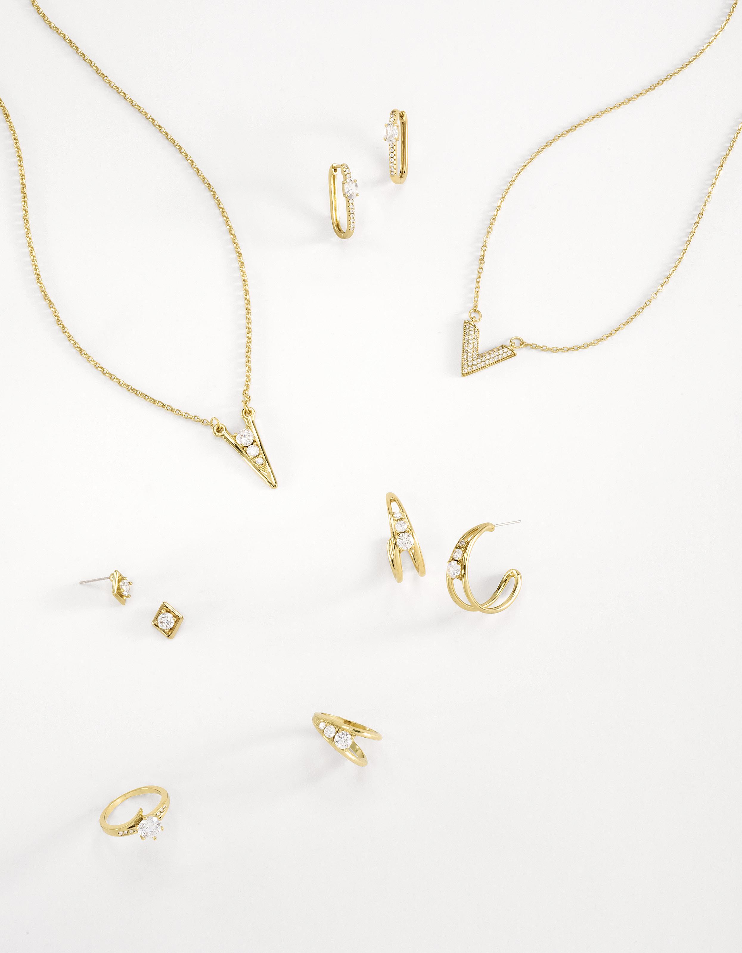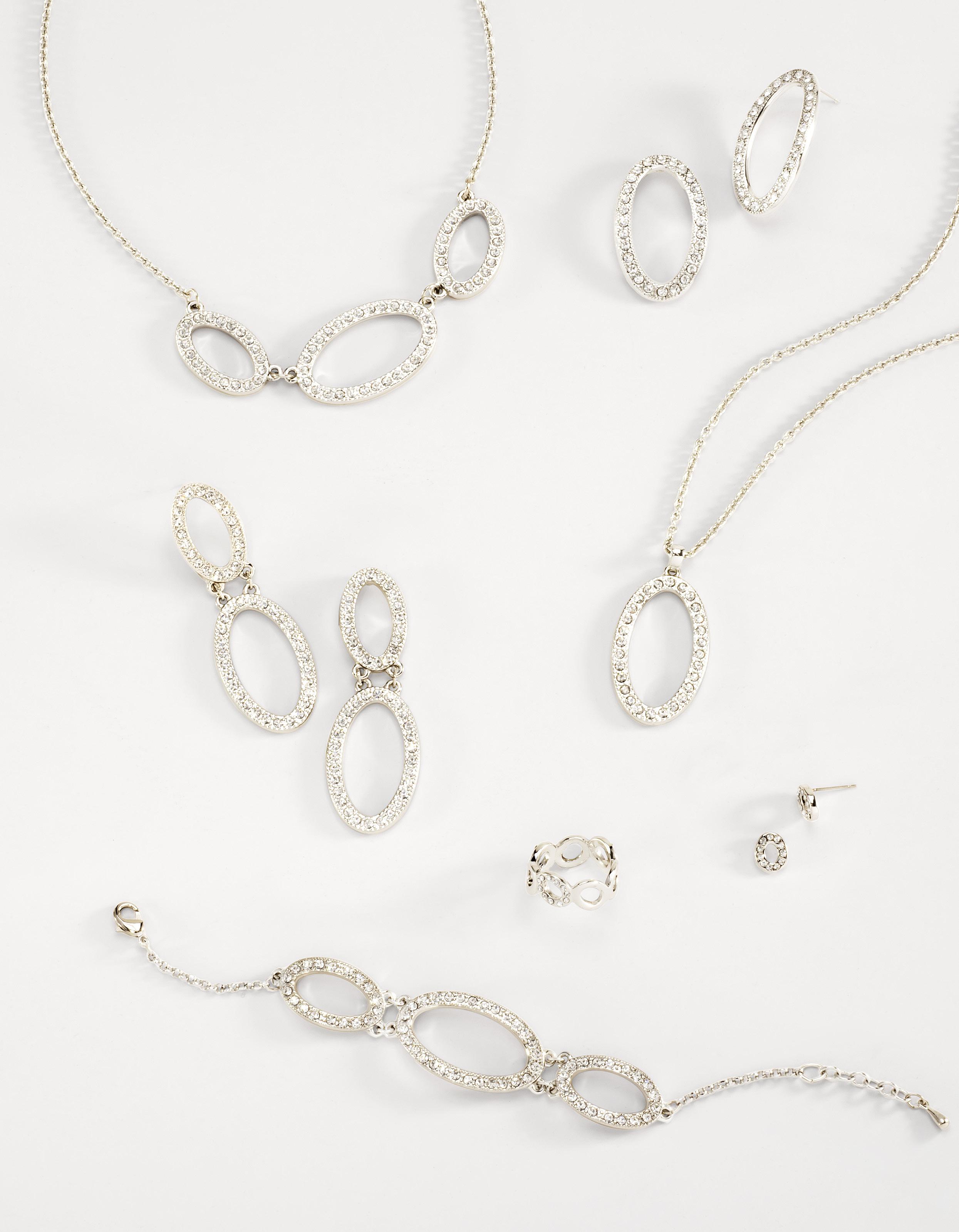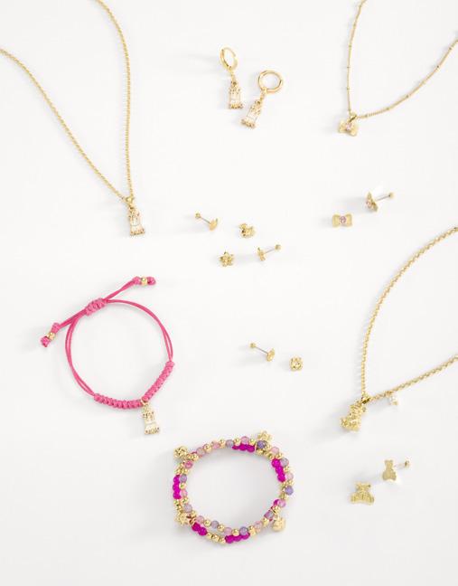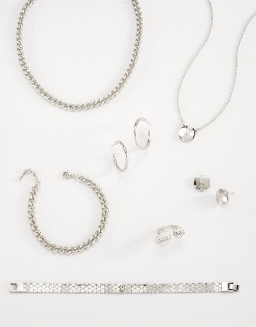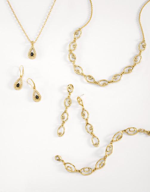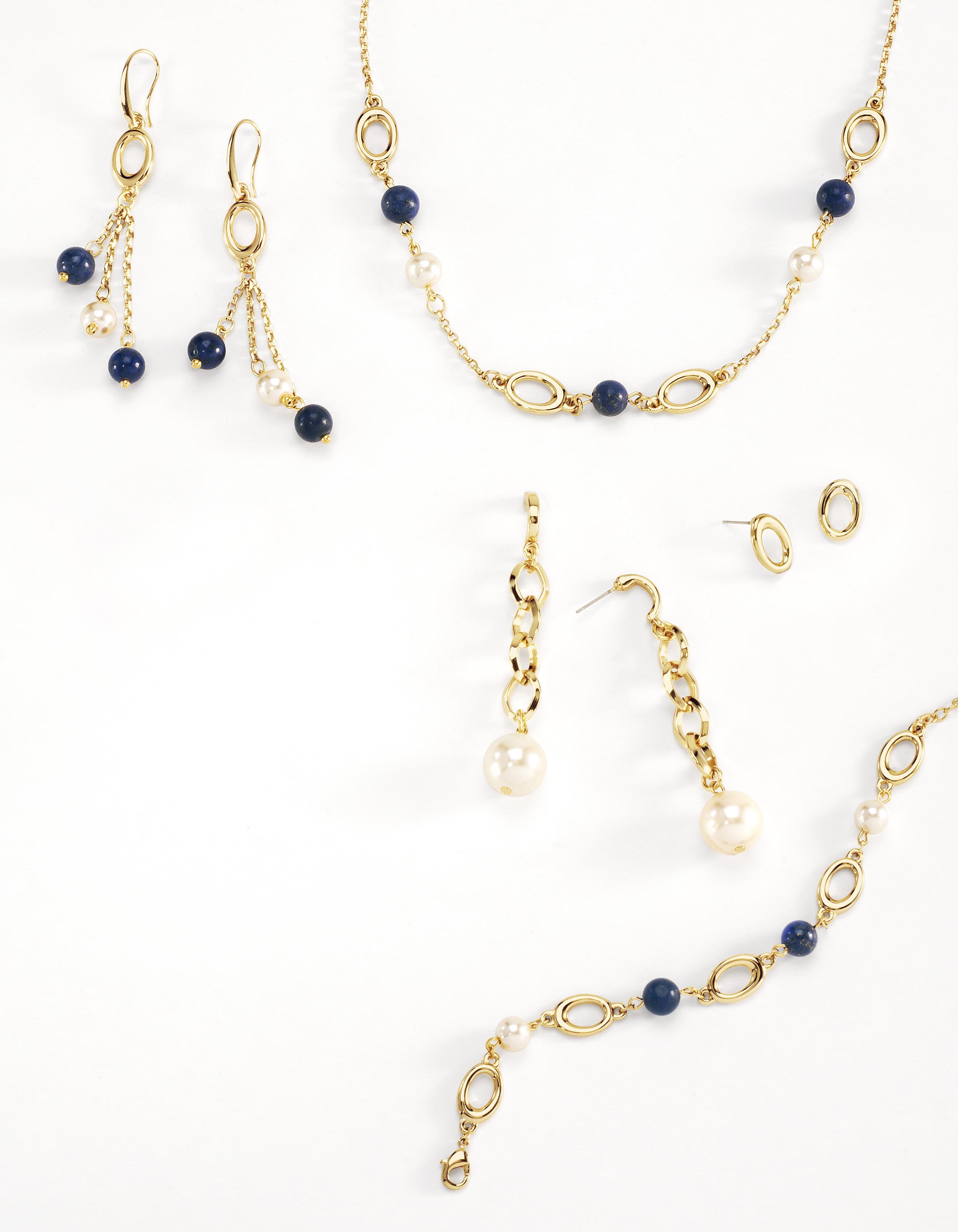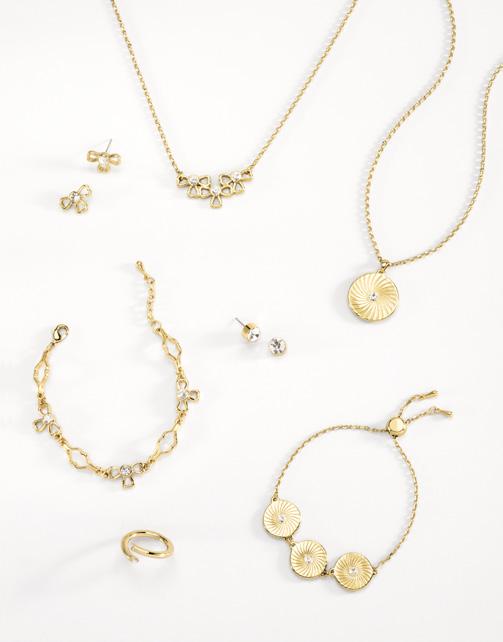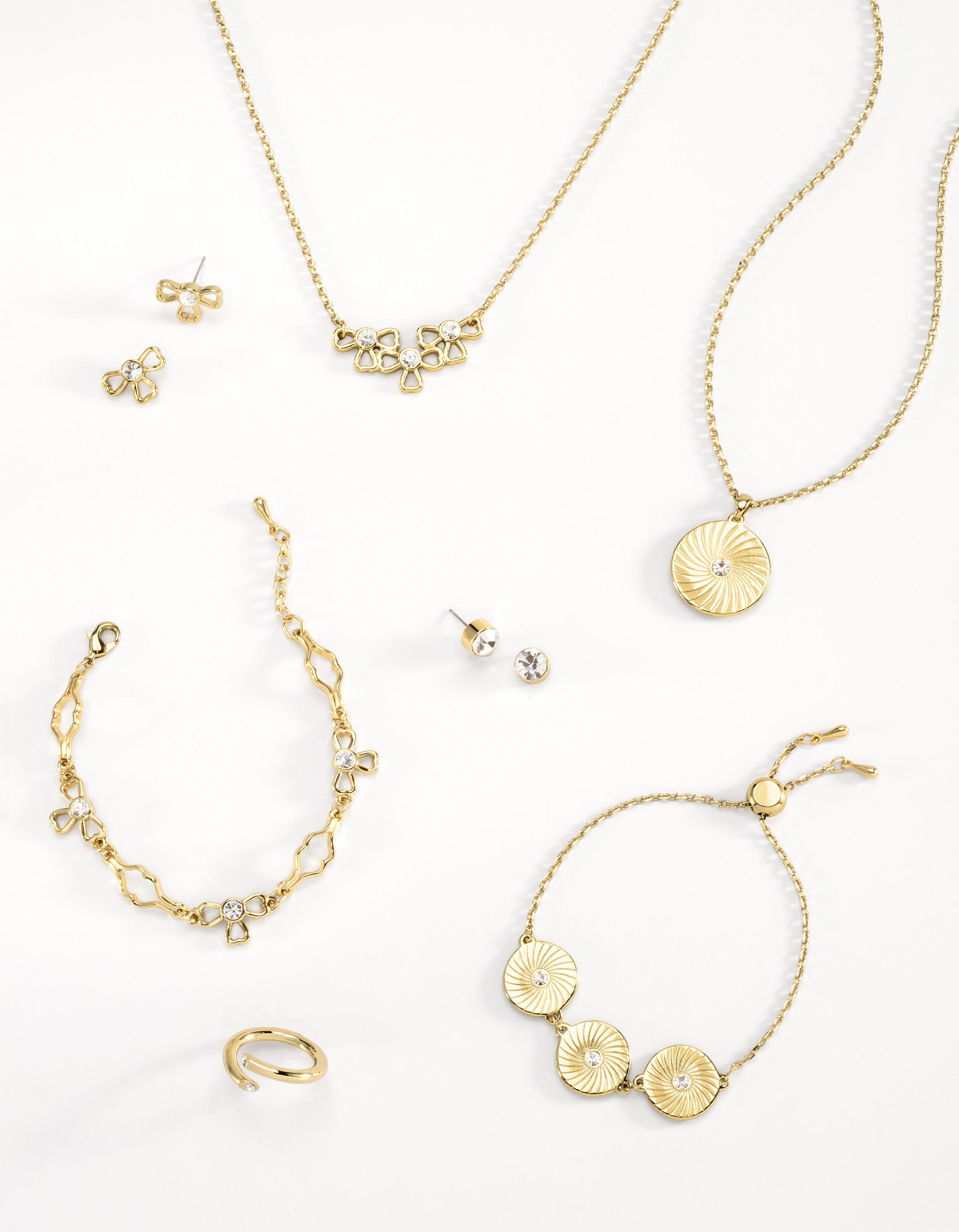 Crystal stones and/or Nicestone / Piedras de cristal y/o Diamonice. Gold, rhodium, platinum or cobalt plated jewerly / Joyería con 4 baños de oro de 18 kilates, platino o cobalto. *Stones and pearls may vary in color / *El tono del color de las piedras o perlas puede variar.