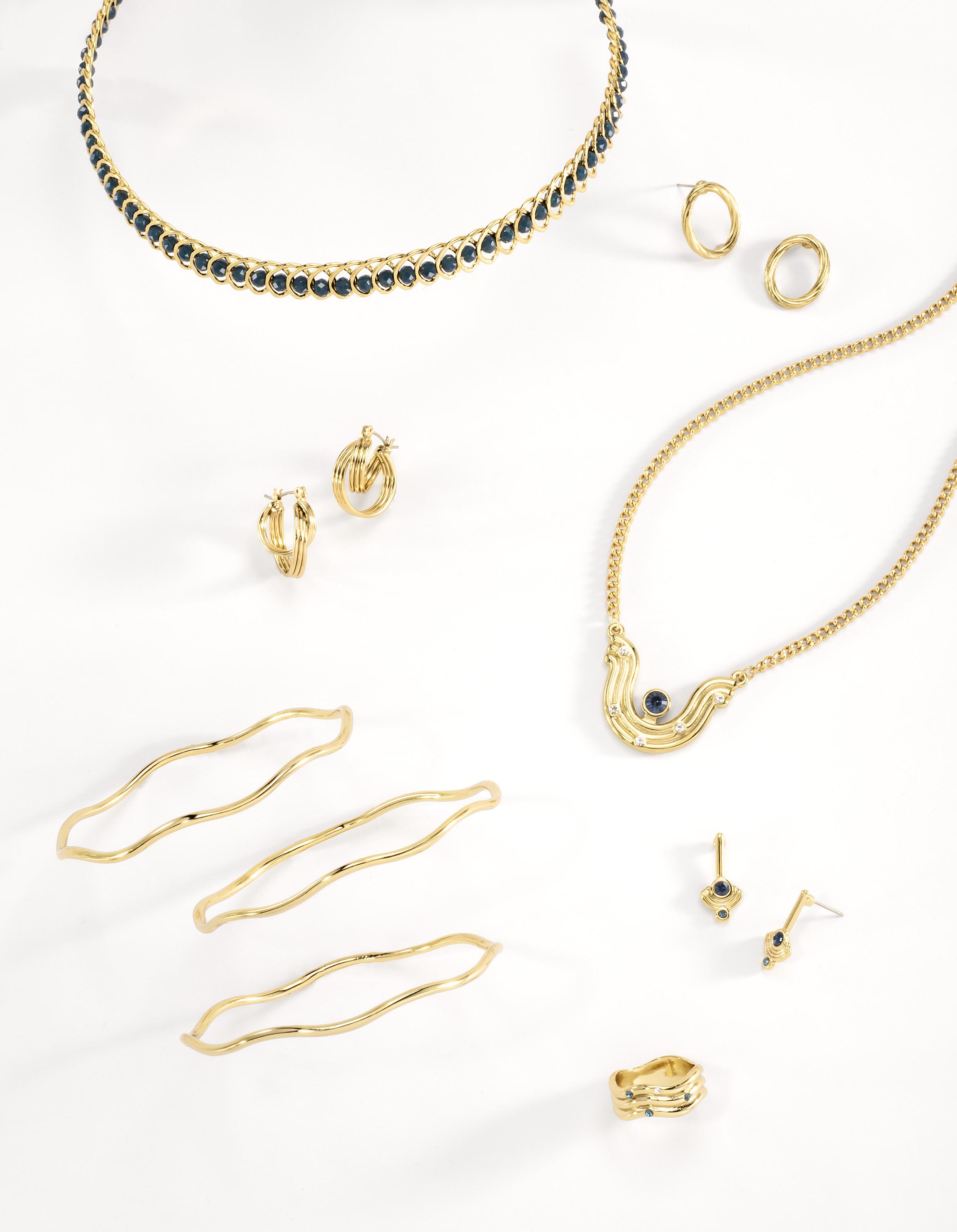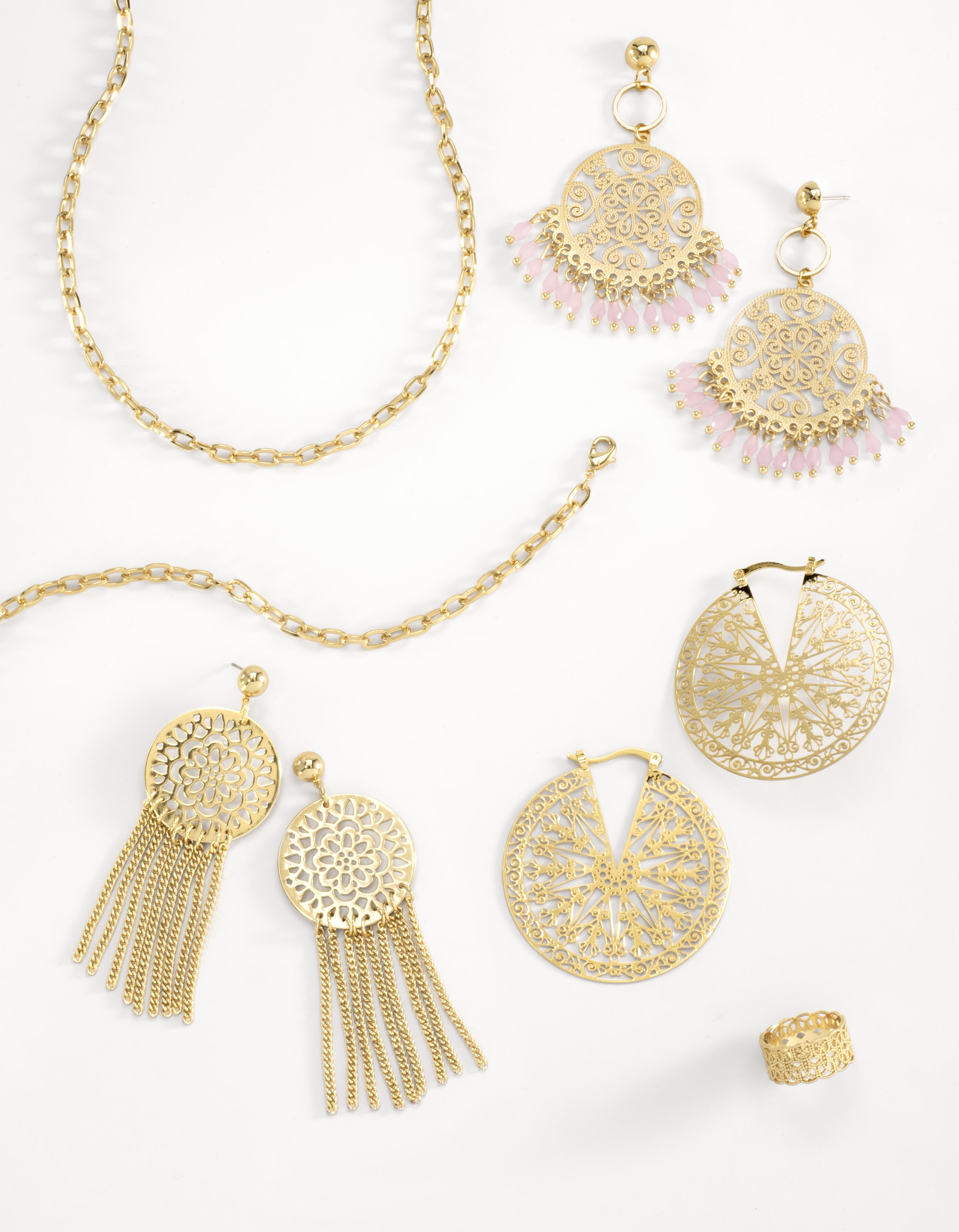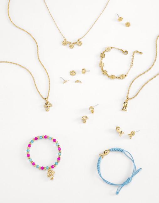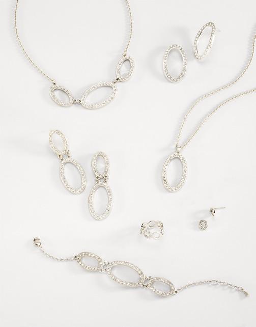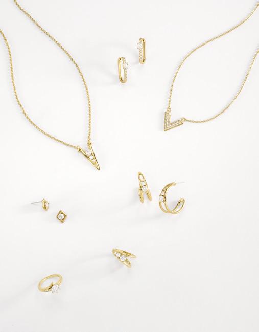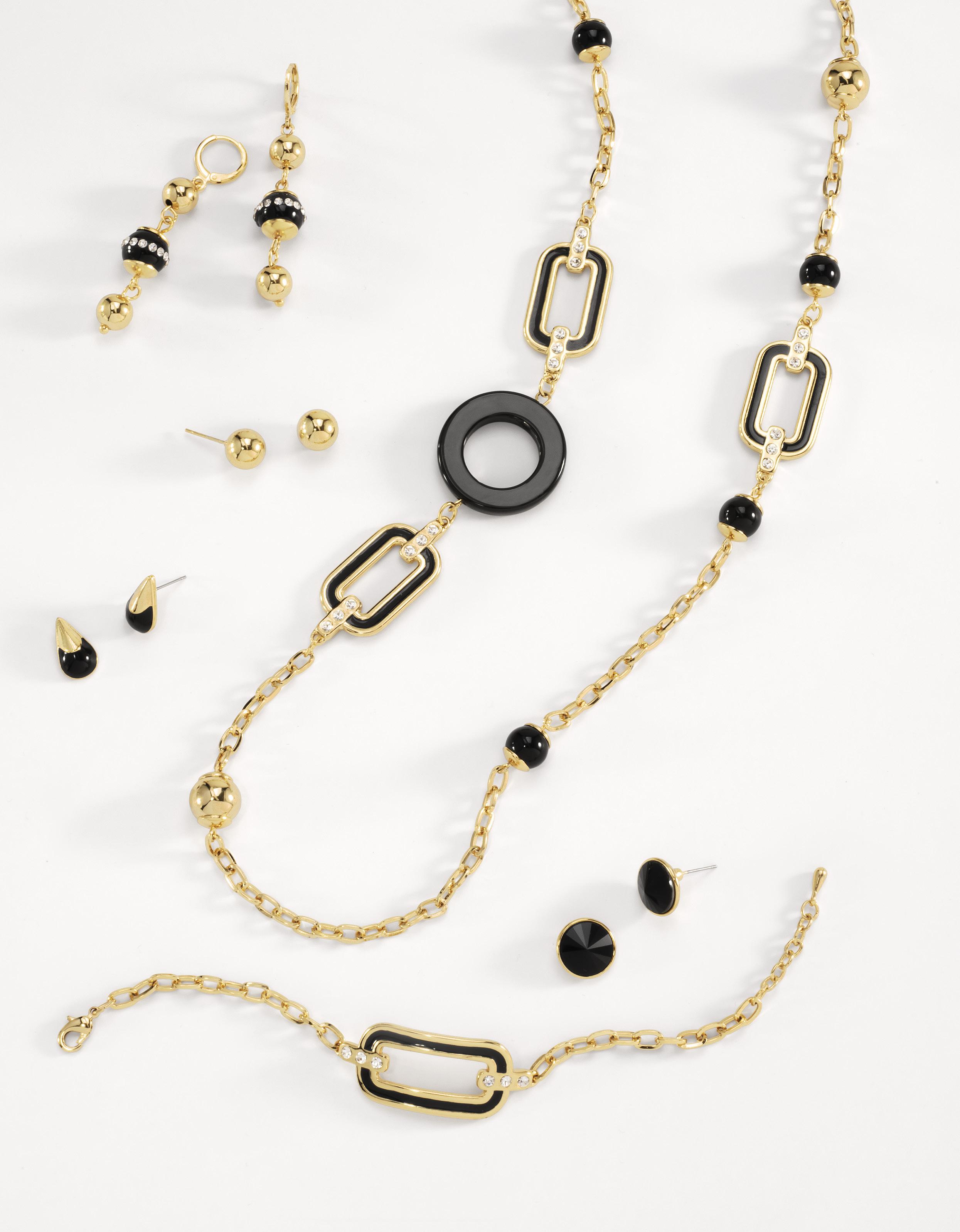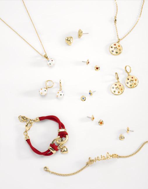 Crystal stones and/or Nicestone / Piedras de cristal y/o Diamonice. Gold, rhodium, platinum or cobalt plated jewerly / Joyería con 4 baños de oro de 18 kilates, platino o cobalto. *Stones and pearls may vary in color / *El tono del color de las piedras o perlas puede variar.