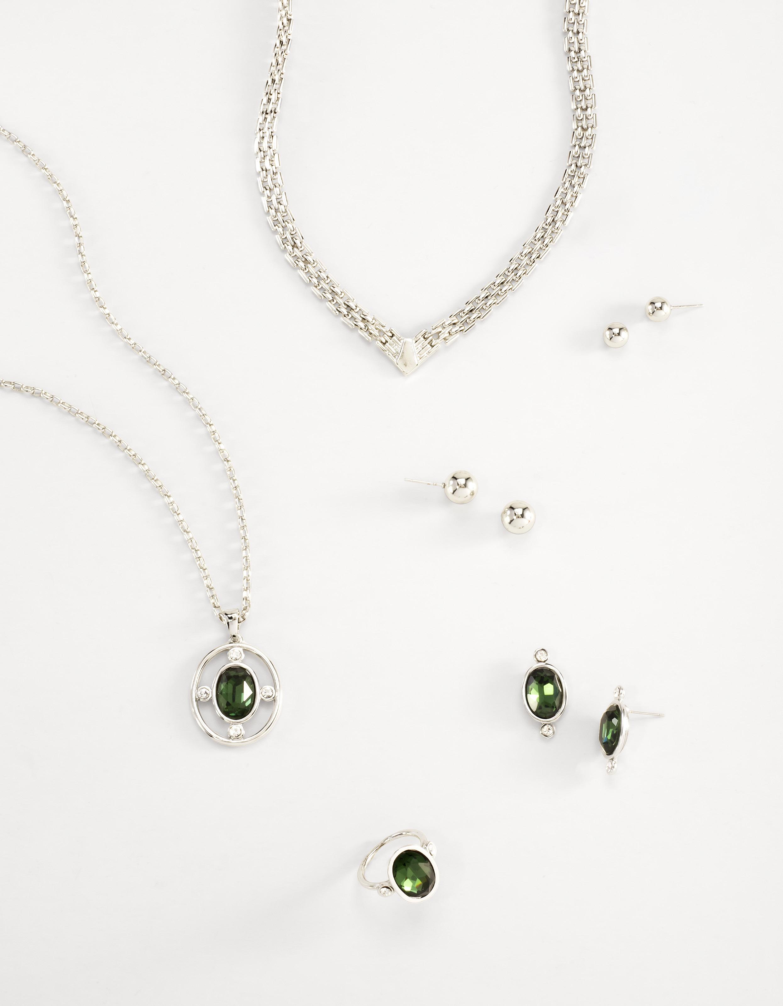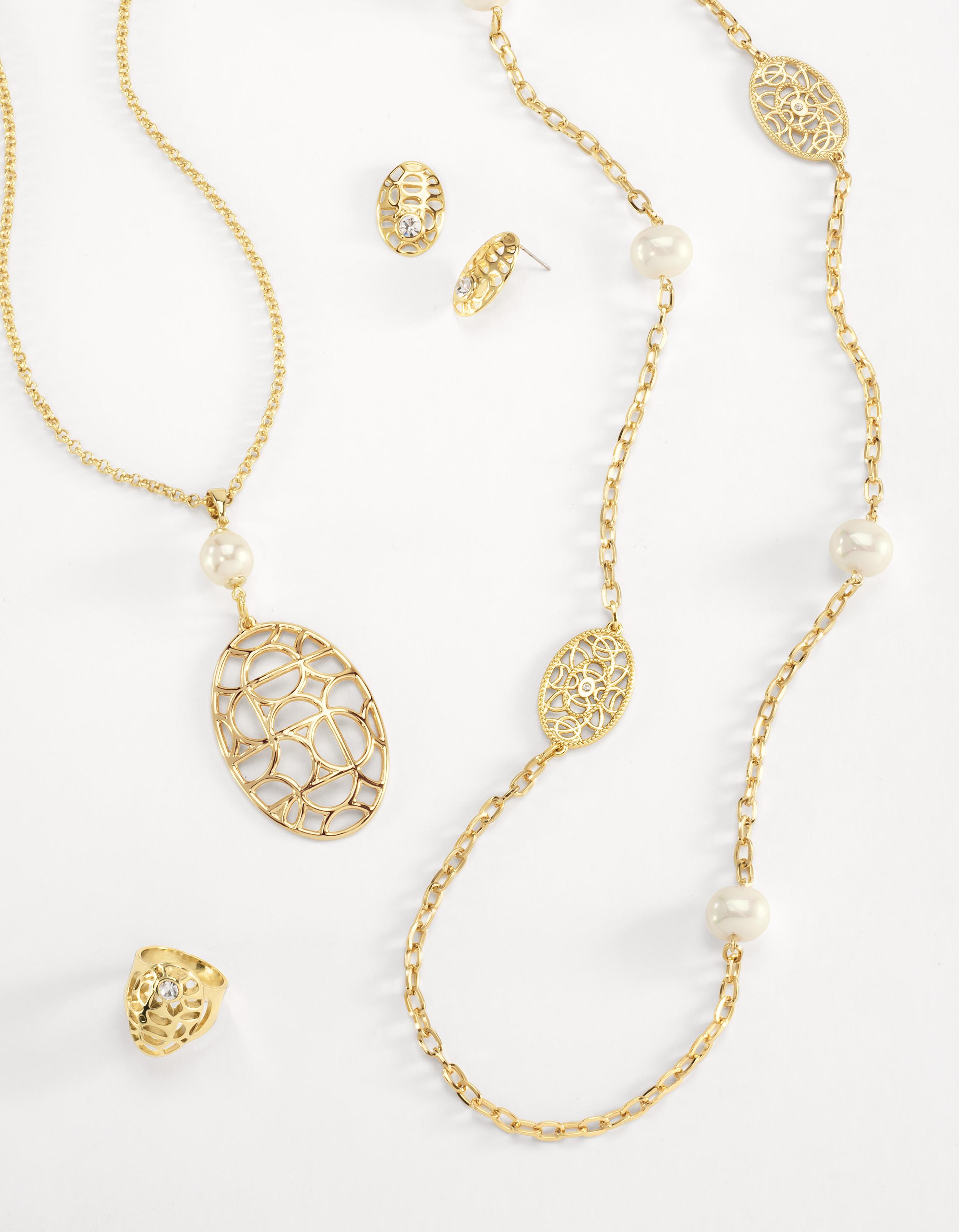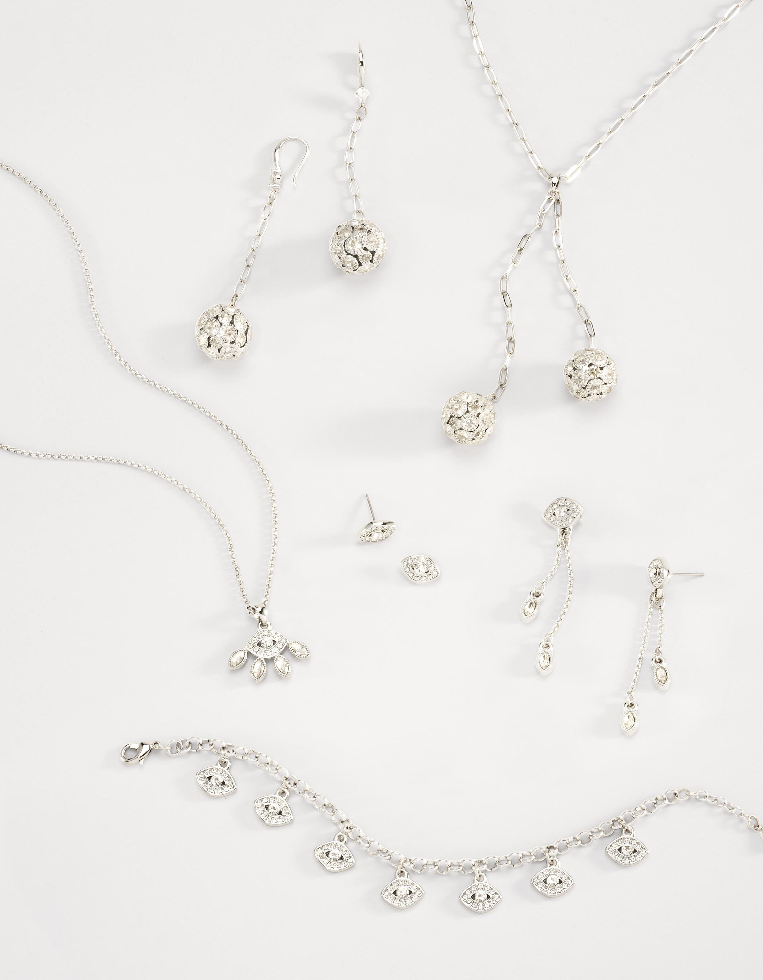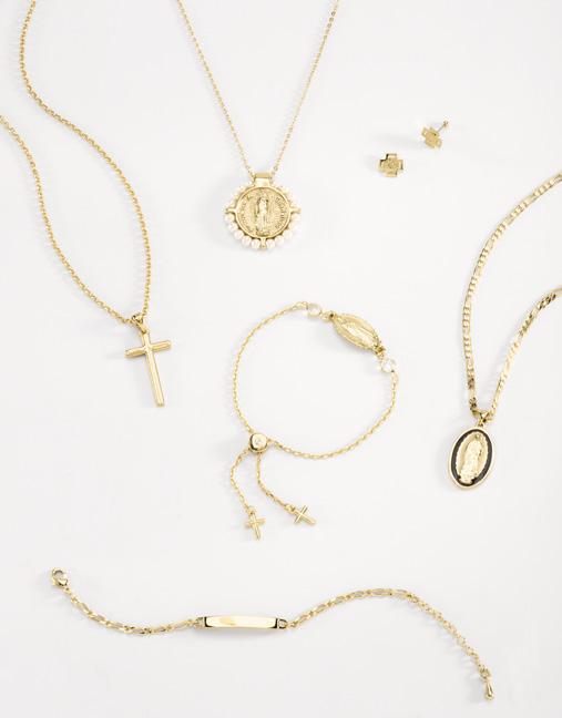 Crystal stones and/or Nicestone / Piedras de cristal y/o Diamonice. Gold, rhodium, platinum or cobalt plated jewerly / Joyería con 4 baños de oro de 18 kilates, platino o cobalto. *Stones and pearls may vary in color /*El tono del color de las piedras o perlas puede variar.