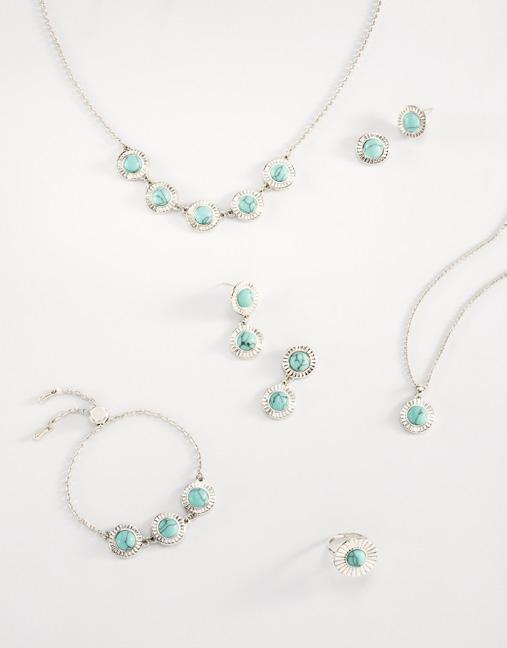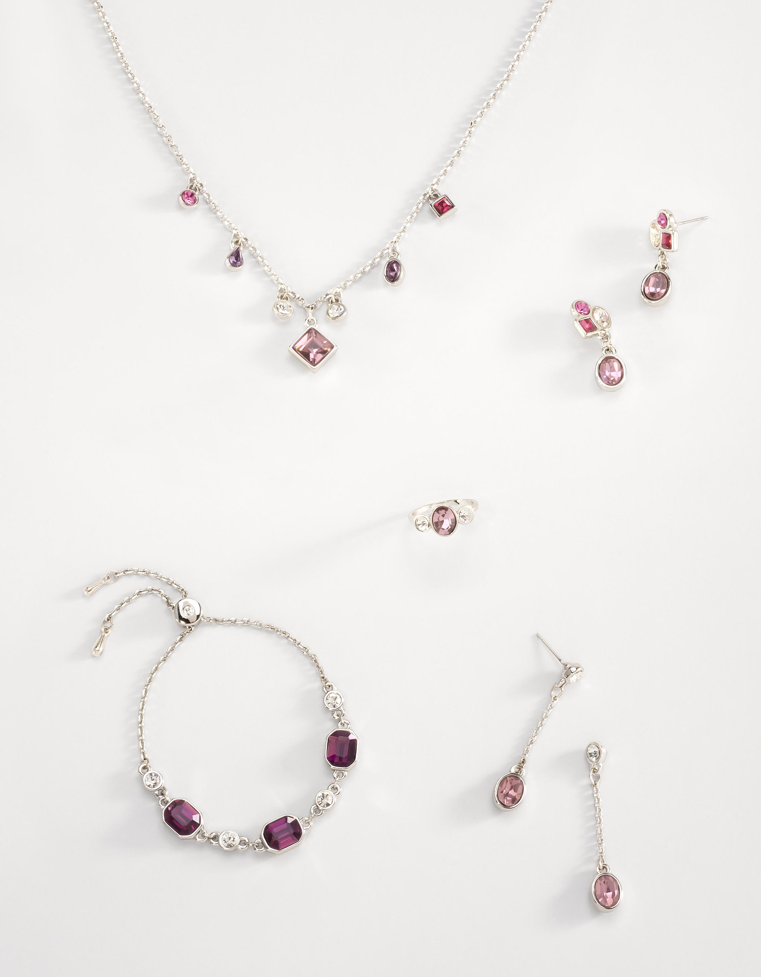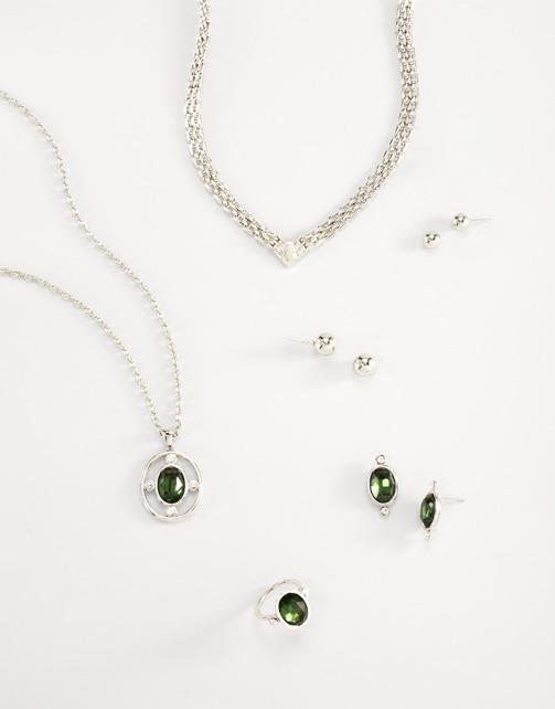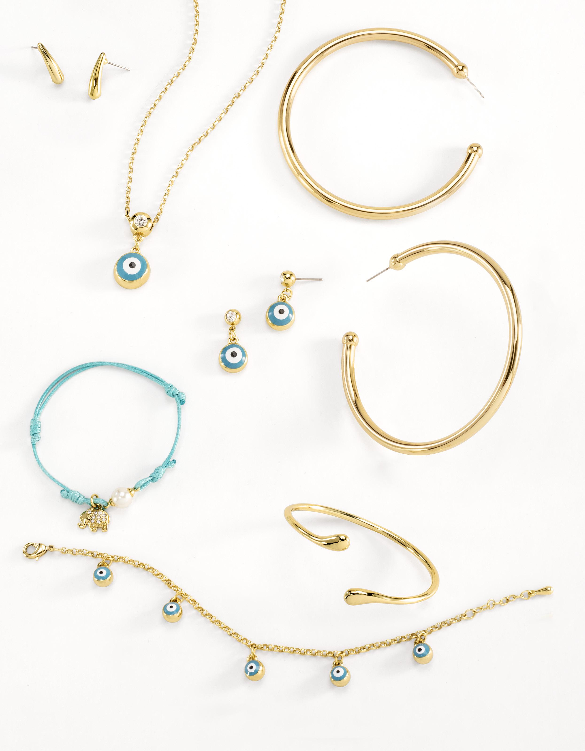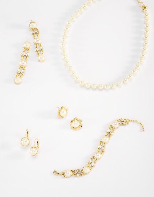 Crystal stones and/or Nicestone / Piedras de cristal y/o Diamonice. Gold, rhodium, platinum or cobalt plated jewerly / Joyería con 4 baños de oro de 18 kilates, platino o cobalto. *Stones and pearls may vary in color /*El tono del color de las piedras o perlas puede variar.