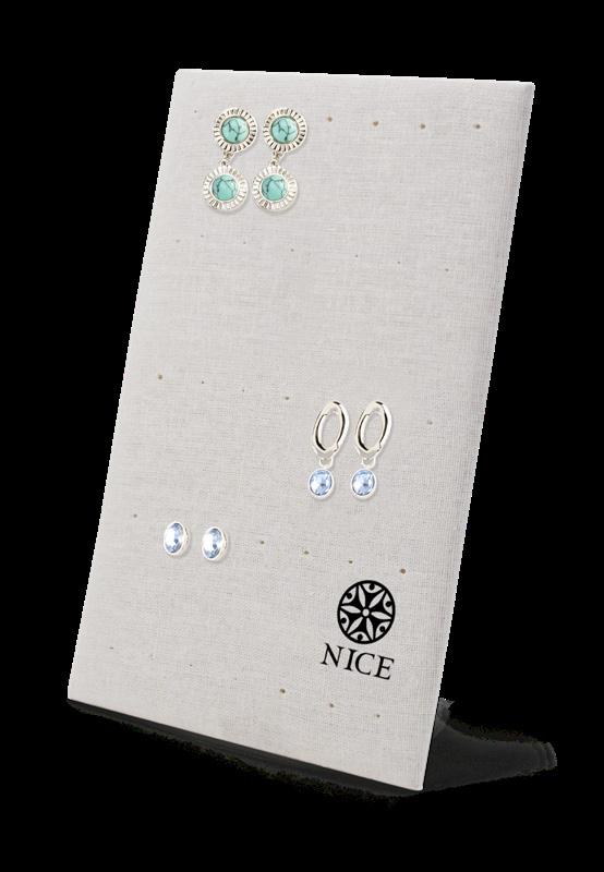 Crystal stones and/or Nicestone / Piedras de cristal y/o Diamonice. Gold, rhodium, platinum or cobalt plated jewerly / Joyería con 4 baños de oro de 18 kilates, platino o cobalto.