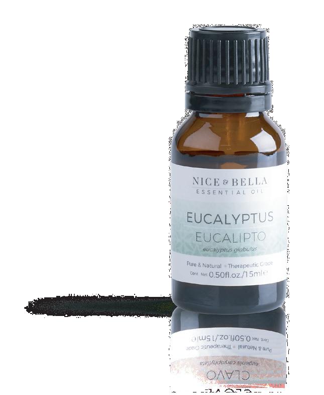 Canela, Eucalipto, Melaleuca, Menta, Geranio y Romero. Aroma mentolado ofreciendo una sensación de frescura.