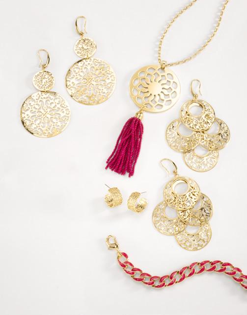 Crystal stones and/or Nicestone / Piedras de cristal y/o Diamonice. Gold, rhodium, platinum or cobalt plated jewerly / Joyería con 4 baños de oro de 18 kilates, platino o cobalto. Prices + sales tax / Precios + impuestos.