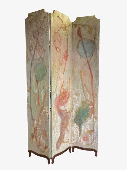 Marie Menken, Untitled (Folding Screen), 1956. Paint, seashells, and sand on screen. Anthology Film Archives, Gift of Lorraine Rothbard Gleckman and Family.