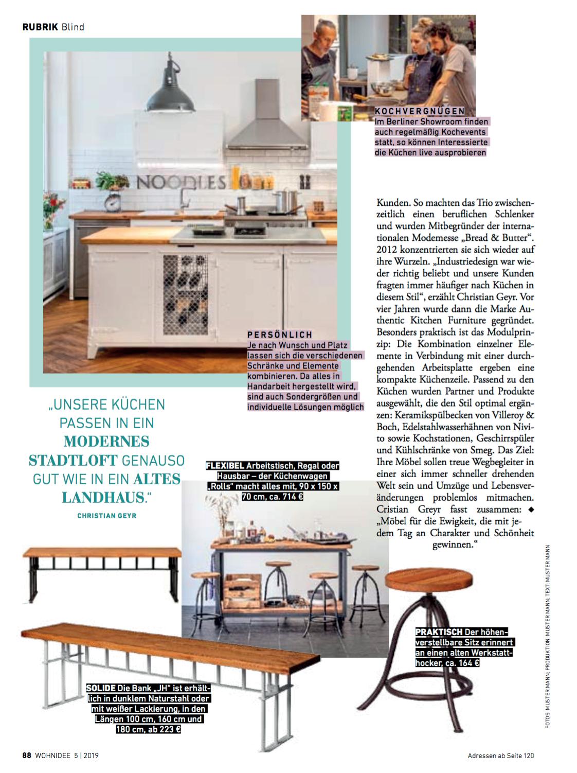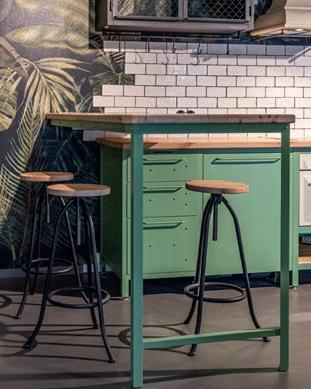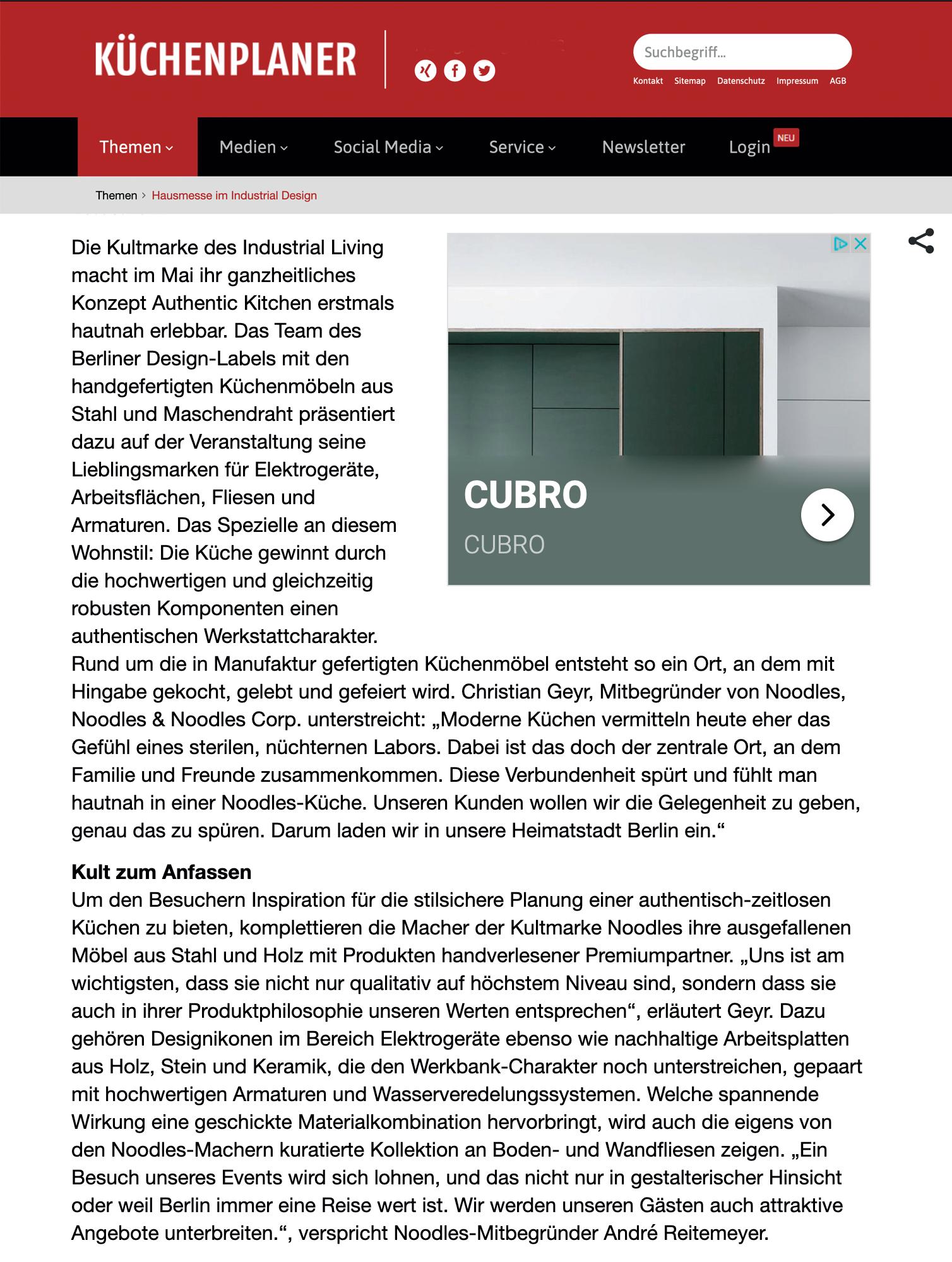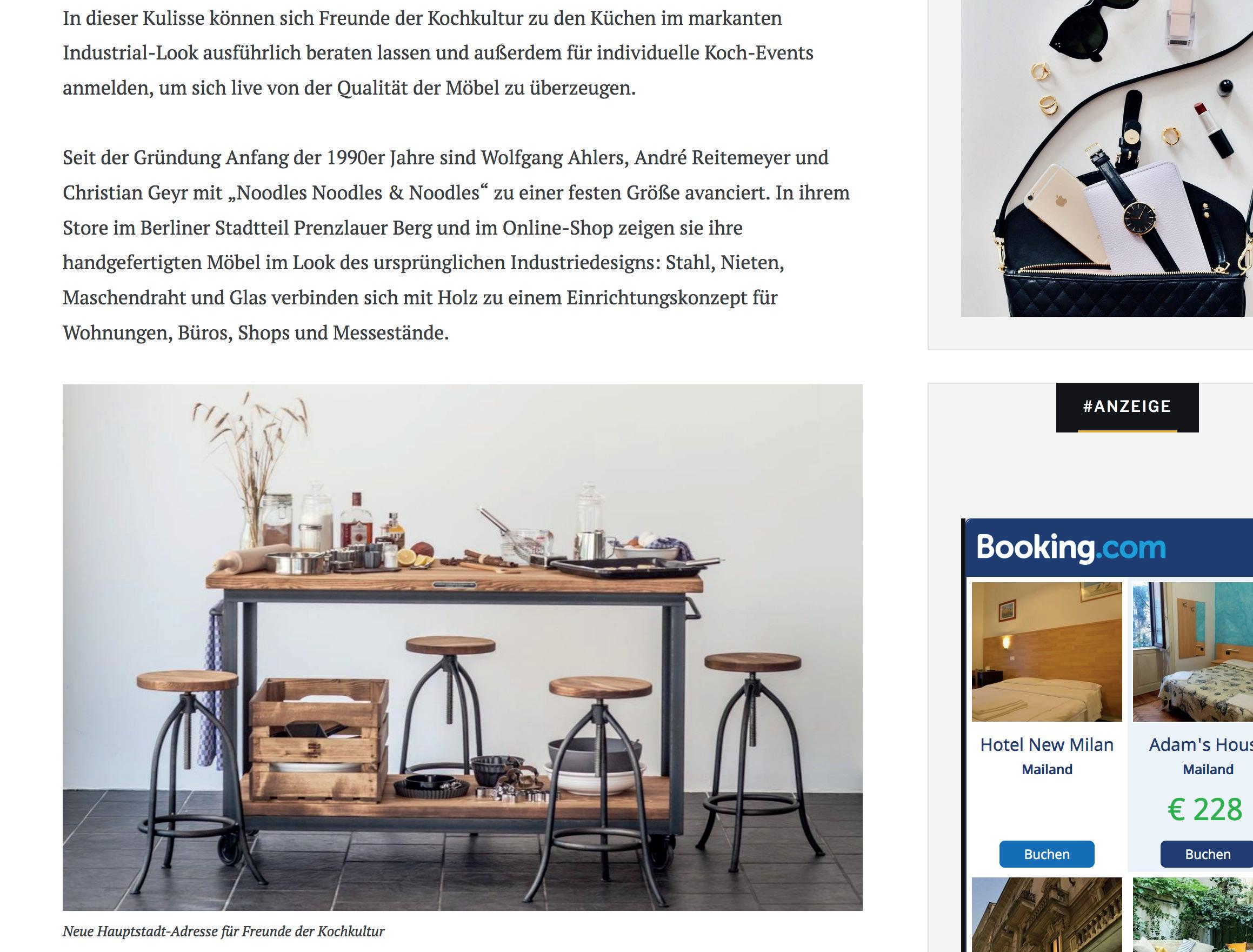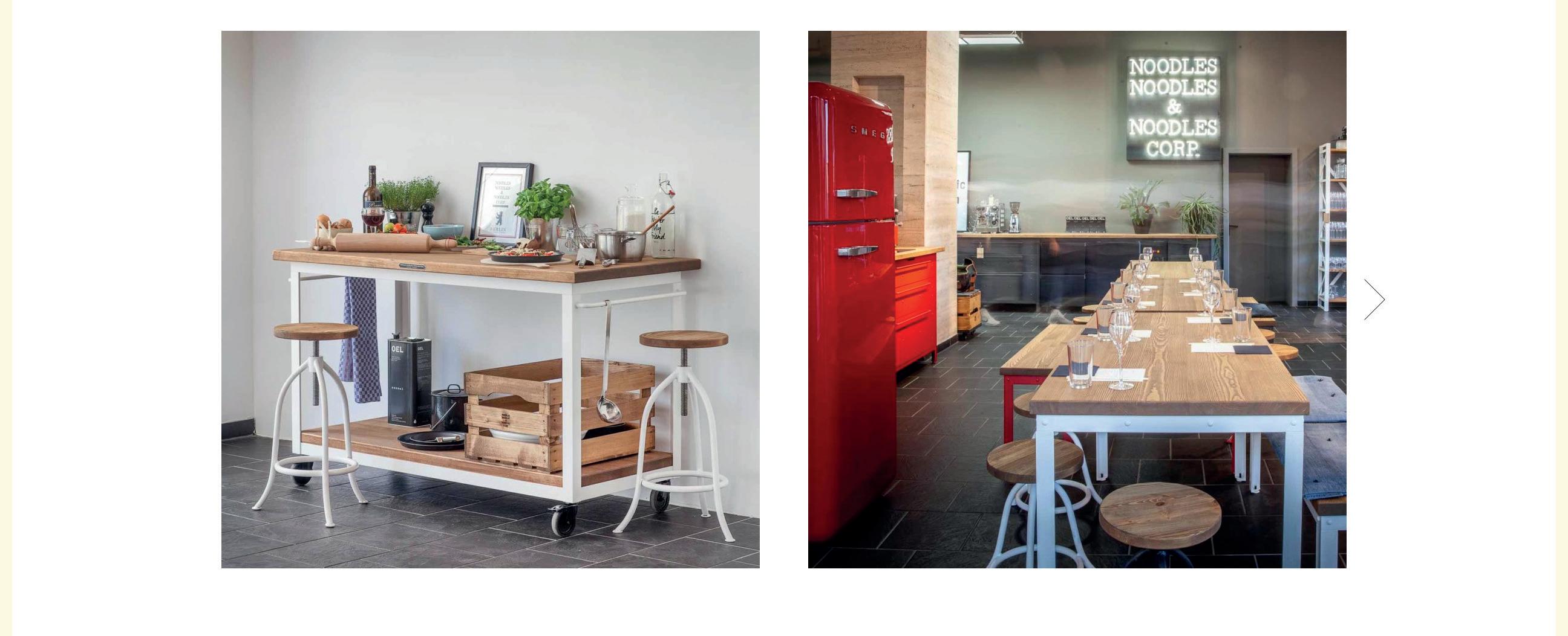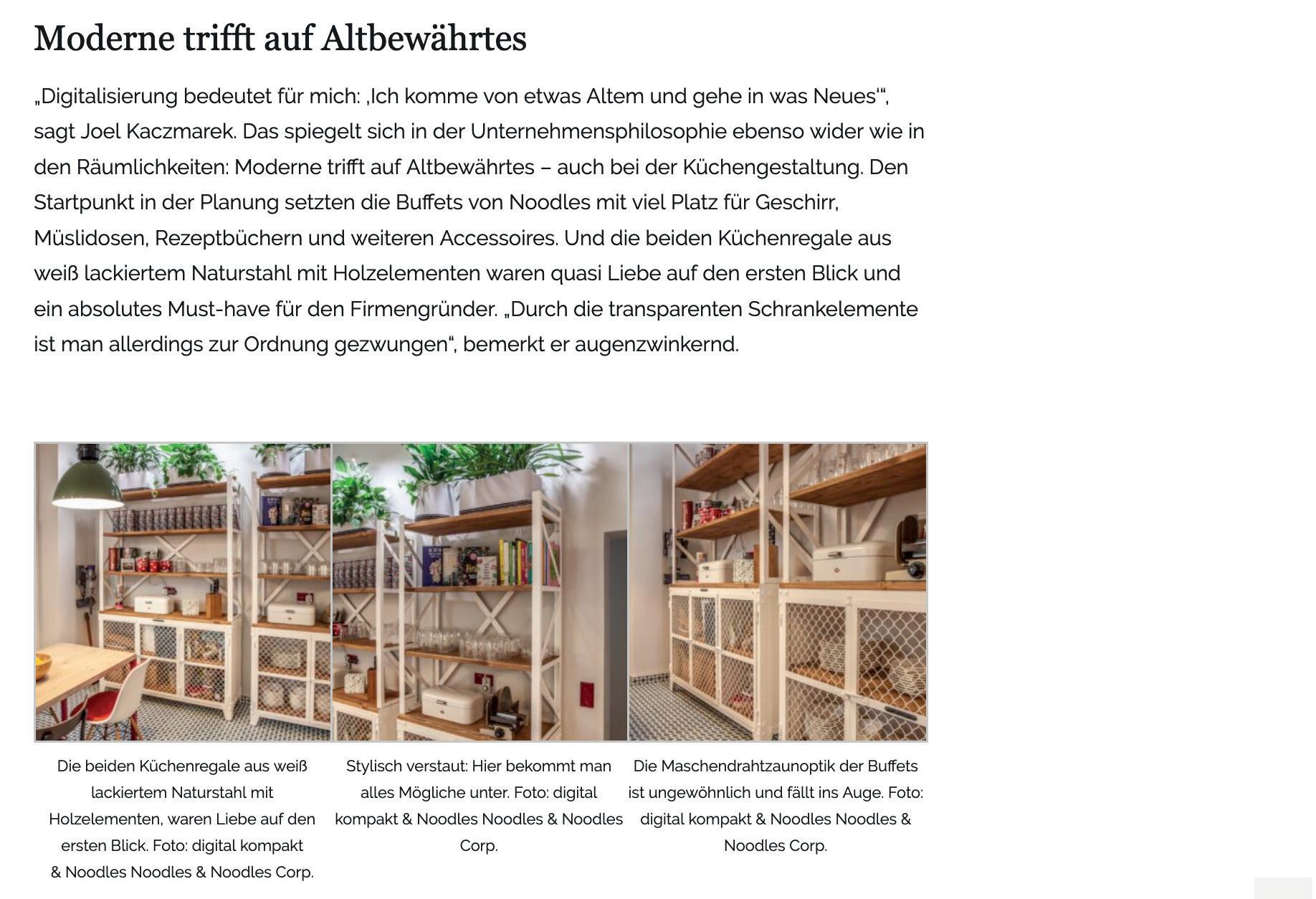 bel: Schränke, Sideboards, Regale, Hocker, Bänke, Tische – alle inspiriert vom Industriedesign des frühen 20. Jahrhunderts und traditionell aus warmgewalztem Stahl handgefertigt.» Die Geschichte der drei Freunde mit ihrer Kreativagentur nahm nun gehörig Fahrt auf. Aus der Produktion von einzelnen Möbelstücken wurde eine ganze Küche. «Wir verschmelzen Szenekultur, Gastro, Shop und Urban Lifestyle mit hohem Qualitätsanspruch und einer Riesenportion Geschmack, Atmosphäre und Stil. Bei uns gibt es nichts, was wir nicht auch selber mögen», so die drei Kreativköpfe. Die Küche ist für Noodles kein steriles Labor, sondern eine Werkstatt, die offen und lebendig zu Genuss und Geselligkeit einlädt. «Obwohl unsere Authentic Kitchen Furniture einen sehr markanten Look haben, ist es immer wieder erstaunlich, wie individuell unsere Kunden sich damit einzigartige Küchen gestalten. Jede ist anders und stets charmant», so Christian Geyr. «Als wir uns aufgemacht haben, unser Sortiment um Küchenmöbel zu erwei-