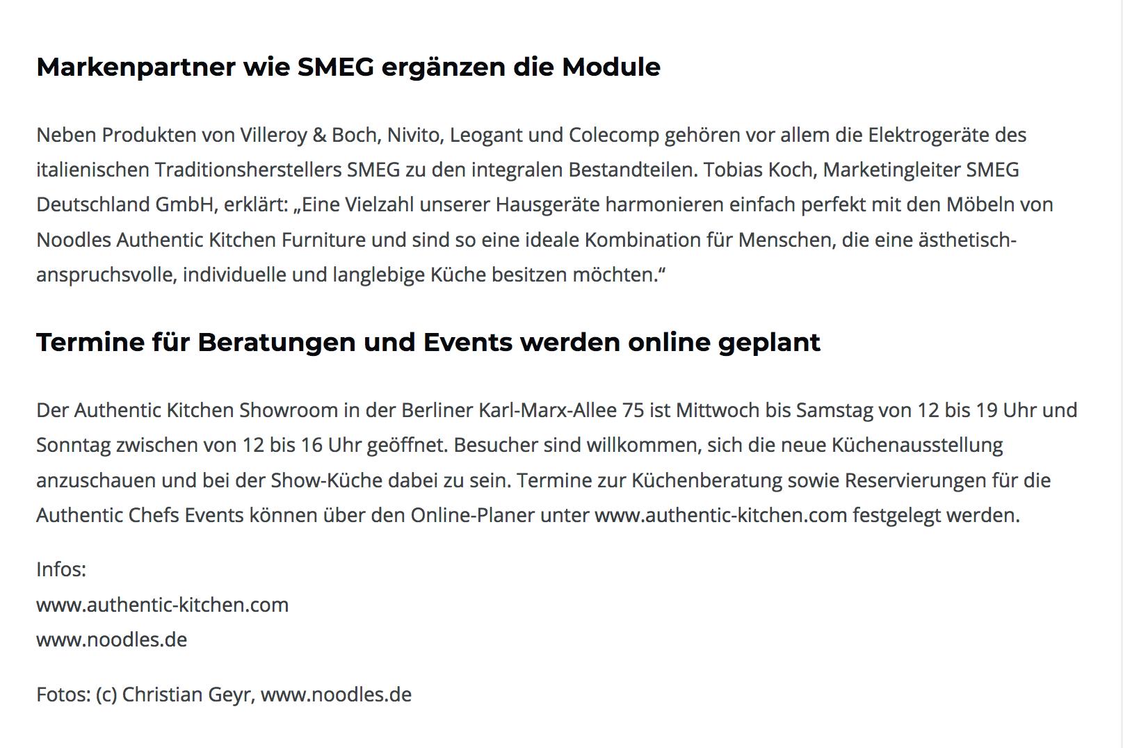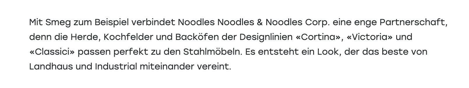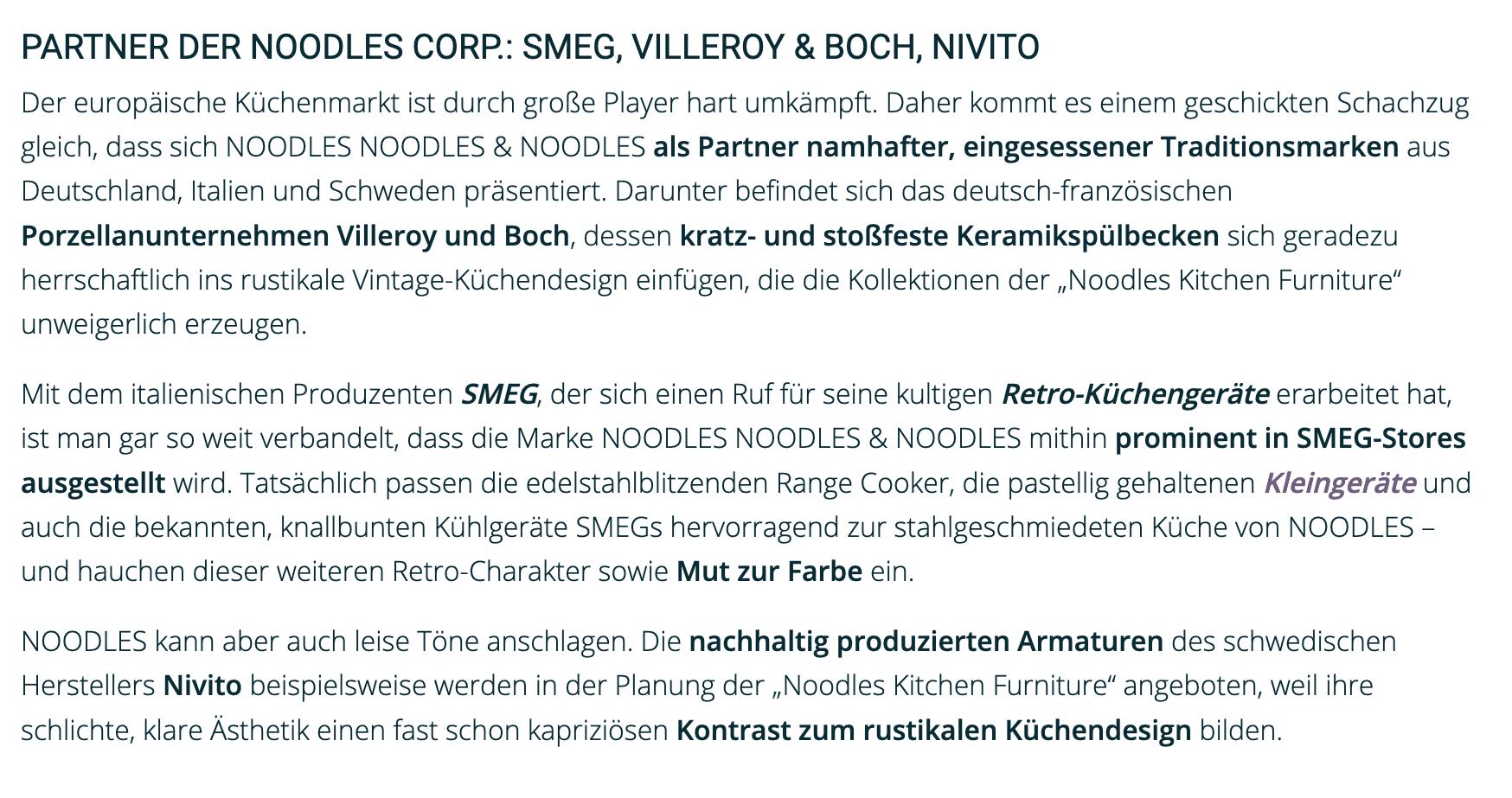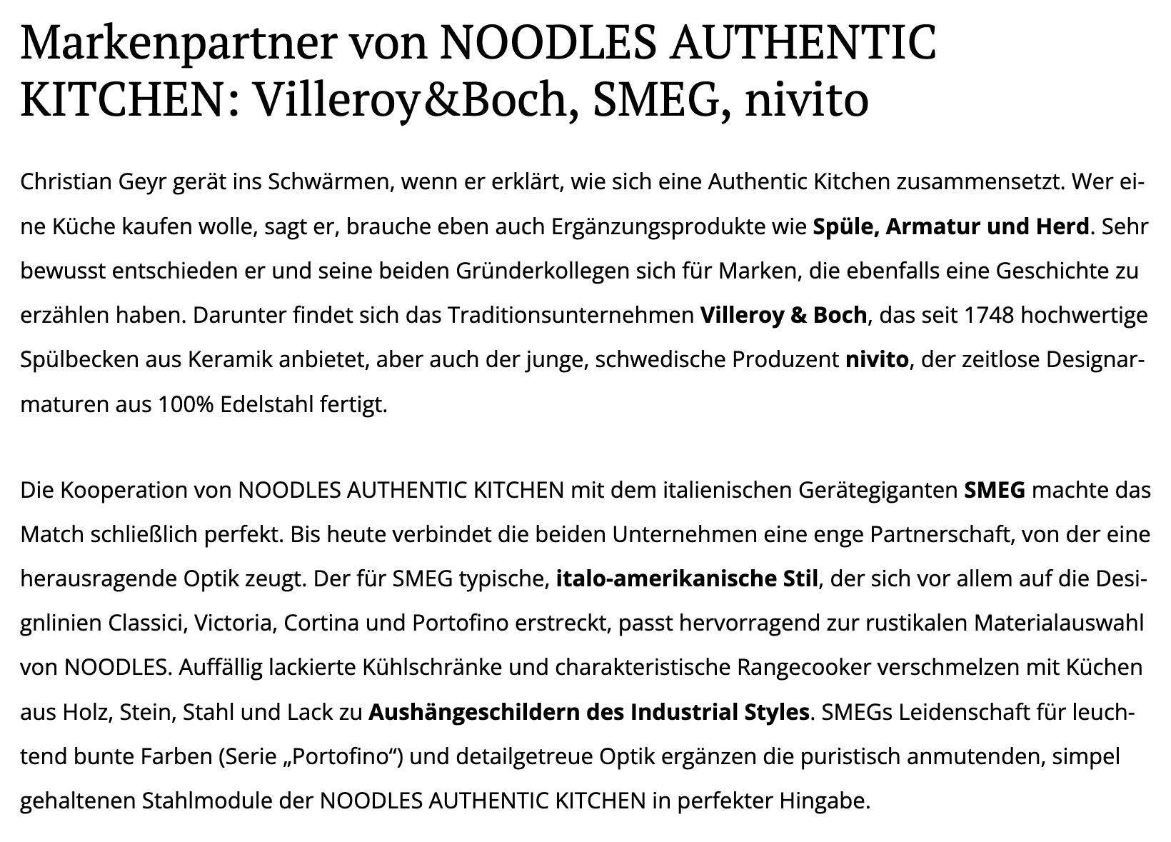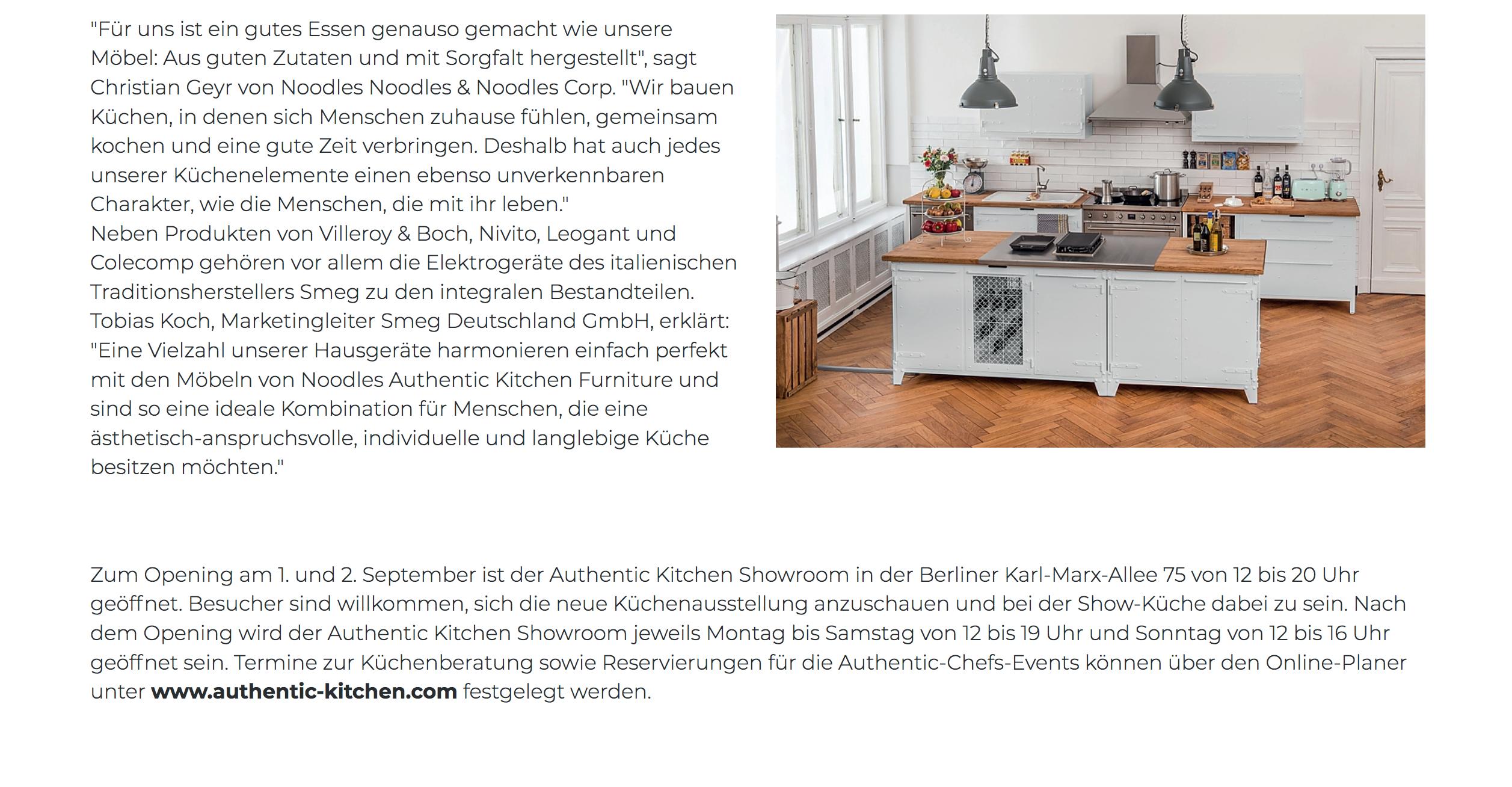 – ein Haushaltsgerät wird zum Stil-Erlebnis. Es sind genau diese Werte, die Noodles Authentic Kitchen und Smeg so harmonisch verbindet. Deshalb ist es selbstverständlich, dass im berliner Showroom von Noodles die Geräte von Smeg und bei Smeg in München die authentischen Küchen zu bewundern sind. Auch der Ausbau des selektiven Fachhandels nehmen Smeg und Noodles gemeinsan in Angriff. Das Herz von Individualisten auf der Suche nach authentischen, handgefertigten Möbeln und Geräten beginnt hier wie wild zu hüpfen.