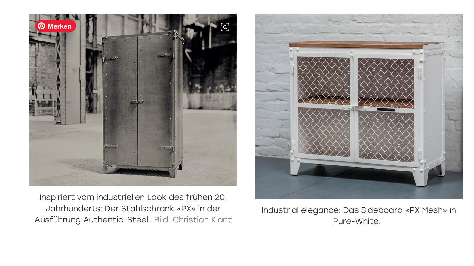 noch andere Wurzeln: Das Ruhrgebiet wickelte in den 90er Jahren seine alten Industrien ab und wurde zum „Spielplatz“ der kreativen Drei. Sie veranstalteten Partys und Events in beeindruckenden Industriehallen mit einem Interieur aus Maschinen, Werkbänken und Stahlschränken. Die Freunde hatte das richtige Gespür und designten Möbel in diesem Stil, die in Polen gefertigt wurden – neben Privatpersonen zählten auch viele Fashionshops zu ihren