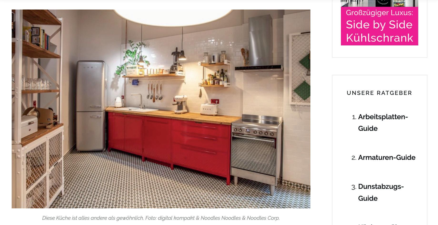 Harmonisches Zusammenspiel: Der Kühlschrank von Smeg (im Bild) sowie viele der Geräte von Smeg sind längst zu Stilikonen geworden und passen perfekt in die Stilwelt von Noodles.
