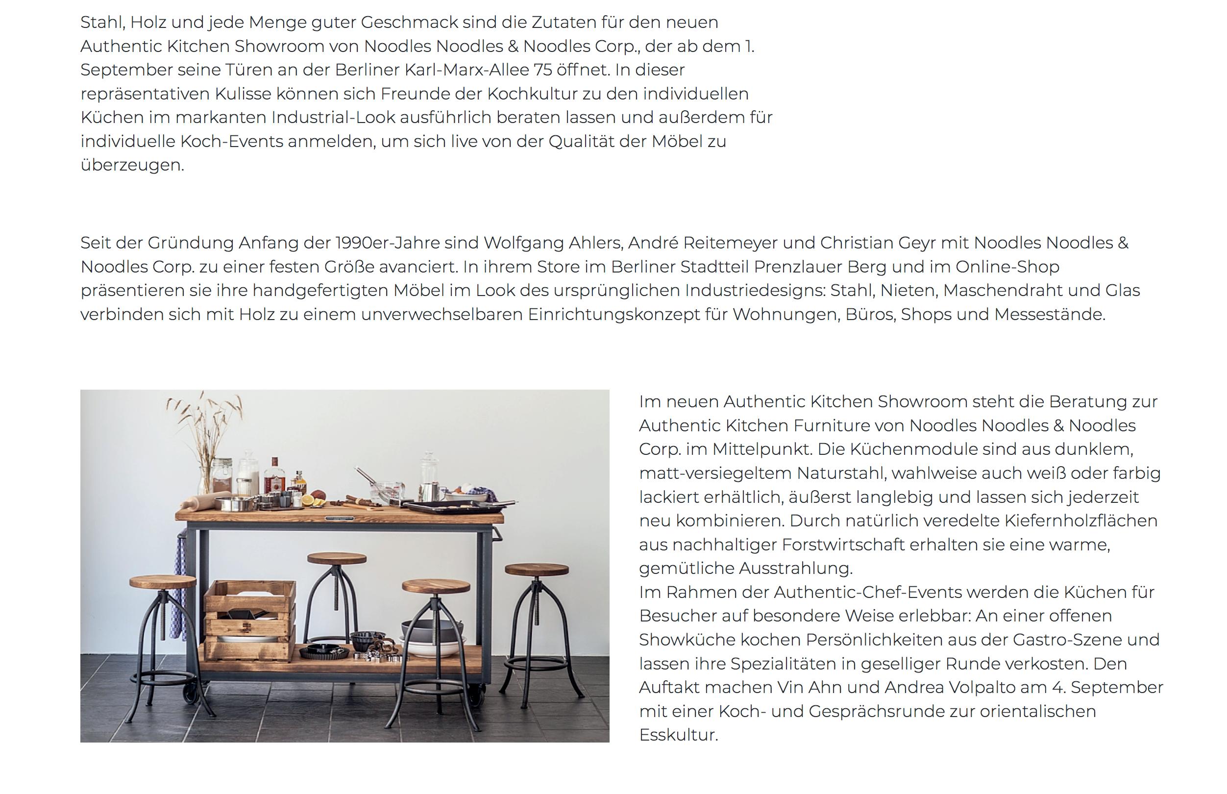 Showroom Letztes Jahr eröffnete der Authentic Kitchen Furniture Showroom in der Karl-Marx-Allee 75 in Berlin