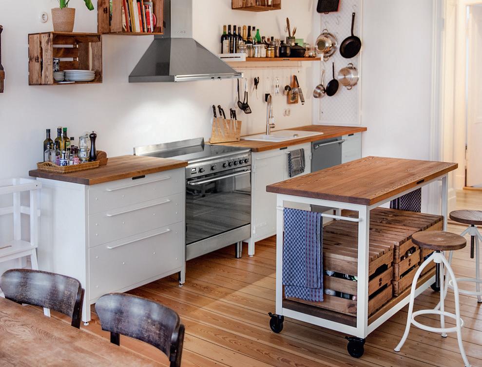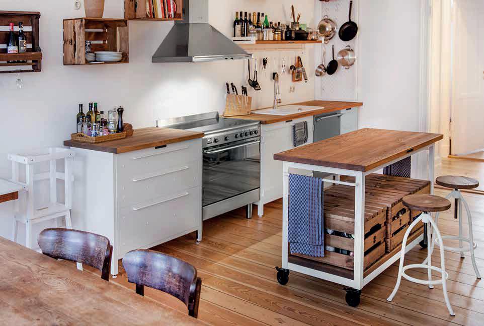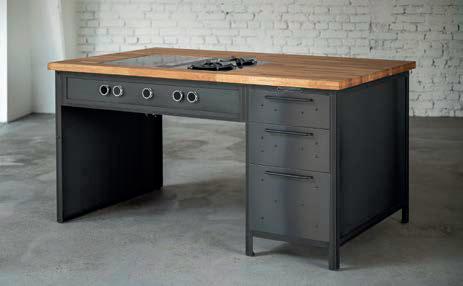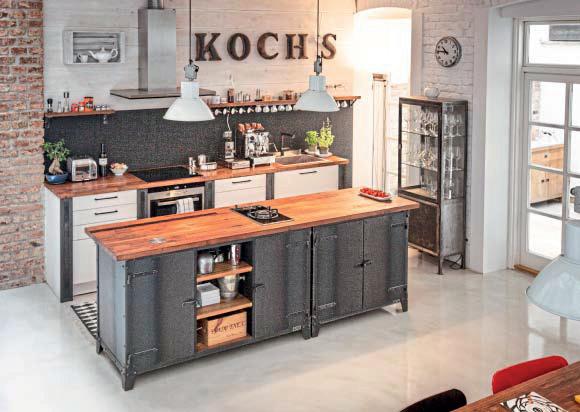 w ohnlicher m a T erialmix Alle Küchenmodule sind in Naturstahl „Steel-Authentic“, mit weißer oder farbiger Pulverbeschichtung erhältlich. Das massive Kiefernholz ist gebürstet und mit einem Naturölprodukt veredelt