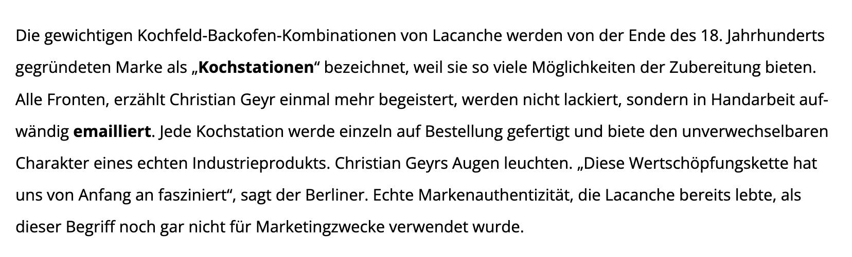 „Für unS iSt ein guteS eSSen genAuSo gemAcht wie unSere möbel: AuS guten Zutaten und mit SorgFAlt hergeStellt.“ Christian g eyr