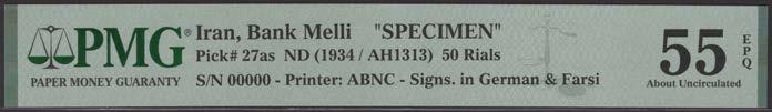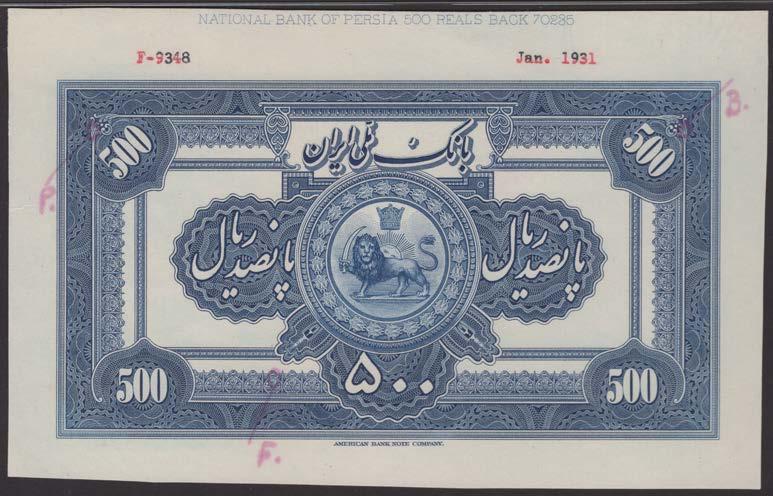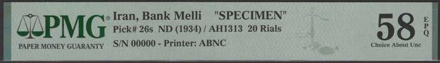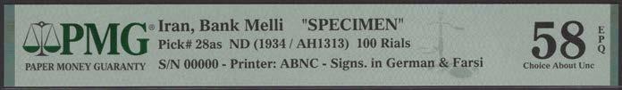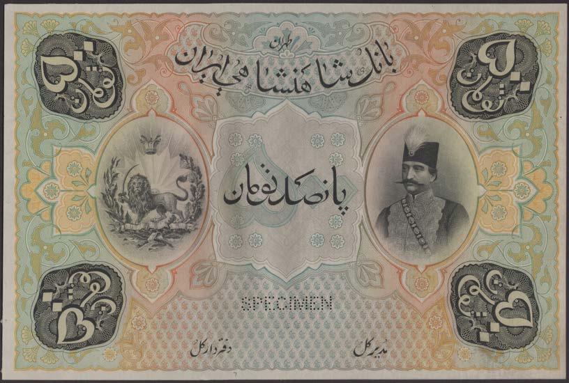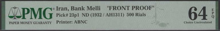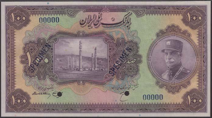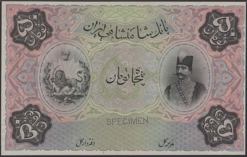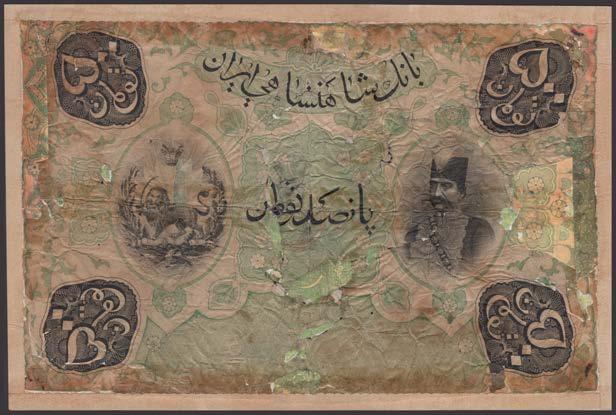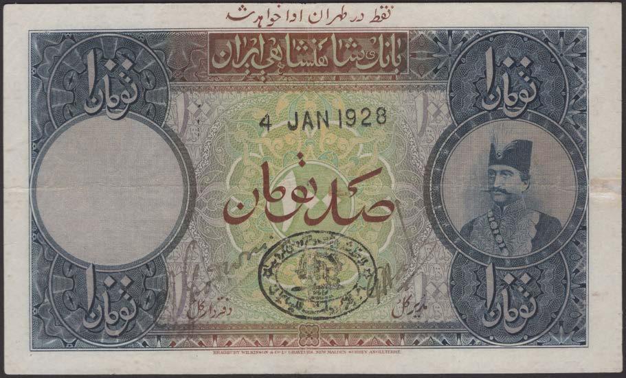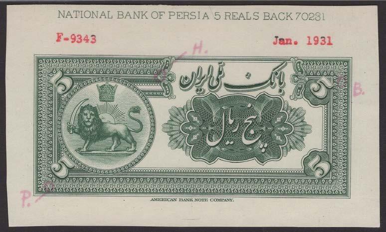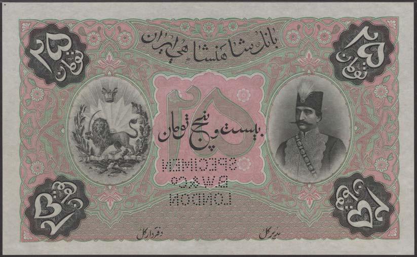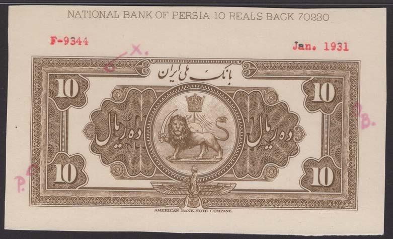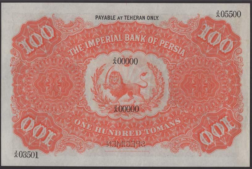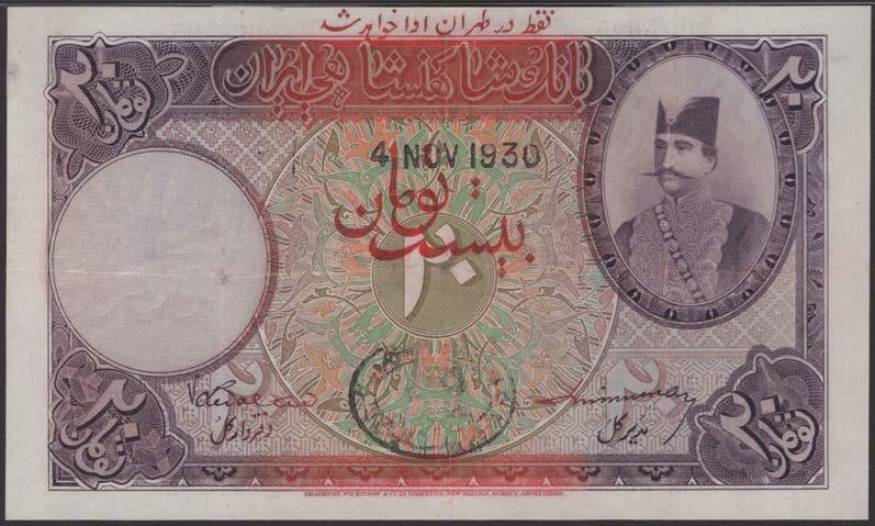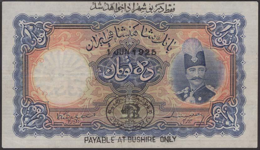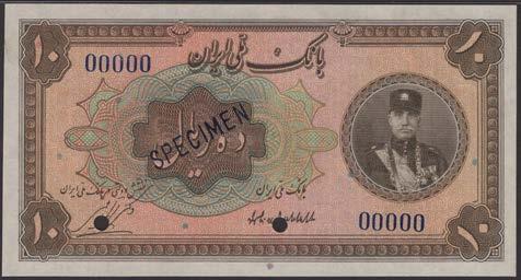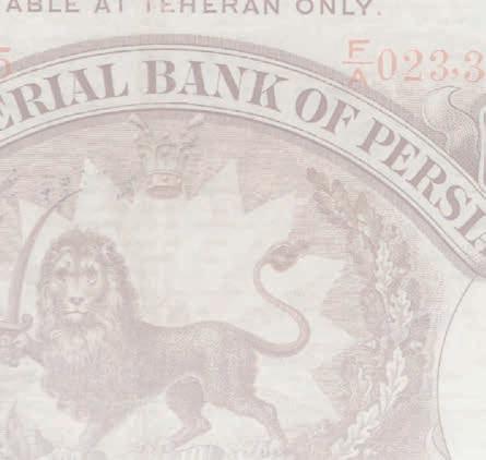This a very unusual example of a note intended for branch issue, but instead being issued in Teheran, and at the very end of the nal year of issue for this design. It seems likely this was issued after the o cial Teheran printings had been used up in preparation for the incoming new designs.