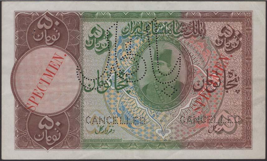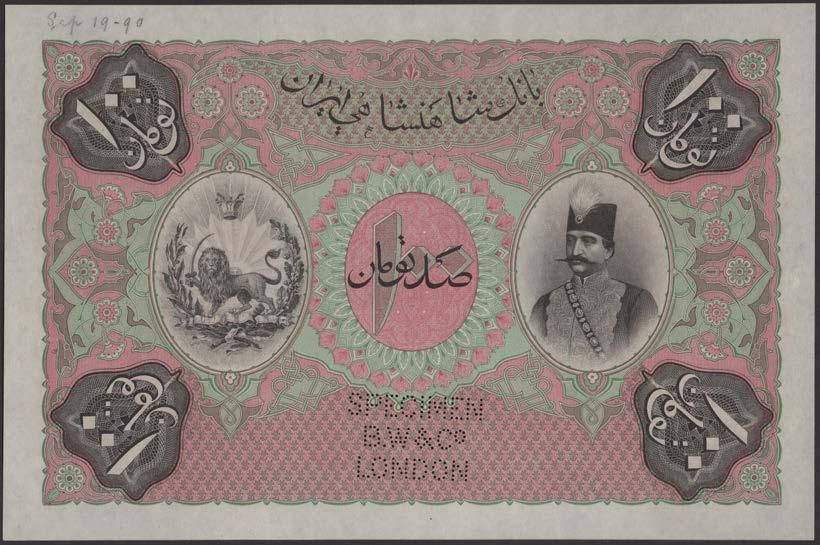 This note was o cially redeemed and cancelled at the bank o ces in Tehran, supposedly as a prelude to destruction. It is unclear why this destruction was not carried out.