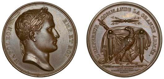 Battle of Moscow, 1812, a copper medal by J.-P. Droz, laureate bust right, rev eagle !ying to right with thunderbolt above Hercules "ghting two giants with club, pile of bodies at feet, 55mm (Bramsen 1163; Julius 2530). Extremely ne with proof-like elds, light brown patina £90-£120