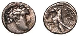 ,Zeusseatedleft,holdingeagleandsceptre,monograminwreathwithin .eld, H below throne, 17.16g (Price 3704). Small scratch on reverse, otherwise good very ne and toned £300-£360 10 x