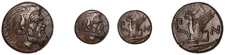 CIMMERIANBOSPOROS, Pantikapaion,ÆUnit,330-300,beardedheadofPanright, rev. forepartofGriffinleft, .sh below, 6.92g (McClean 4453; McDonald 69). Good very ne £90-£120
