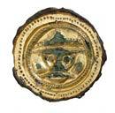 Post-Medieval, Jewish brass circular seal matrix, 21 mm diameter x 31 mm high, with double looped suspension behind. Face with incised Bull in a pellet border and Hebrew inscription around, which translates as (The righteous Avraham Eli son of our honorable teacher and Rabbi Ari Leib may G-d protect and give long life) Very ne with a olive green patina. £200-£240