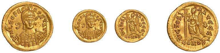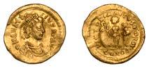 NORTHERNGAUL, AulerciEburovices,goldHemistater,1stcenturyBC,diademedheadleftwithlarge,heavycheekand wing-likehair,bristledboarattachedtotheundersideofjaw, rev. triple-tailedhorseboundingright,bird-headedcharioteerabove, bristled boar below, rosette in !eld, 3.18g/5h (Scheers Eburovices 34; DLT 7017; Nash 157). About very ne
