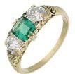 TWO GEM-SET RINGS, the tapered band ring set to the front with graduated rows of brilliant-cut diamonds and centred with a step-cut emerald, together with a foil backed emerald ring, with foliate decoration to the shoulders, total diamond weight approximately 1.00 carat, ring sizes H½. £600–£800
