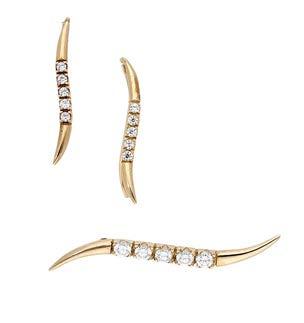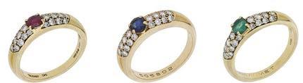 THREE GEM-SET RINGS BY CHAUMET, each pavé-set to the front with brilliant-cut diamonds and set with a circular-cut ruby, emerald or diamond, each signed ‘Chaumet’, one numbered, one with London import mark for 18ct gold, one with French assay mark, maker’s case, total diamond weight approximately 1.00 carat, ring sizes M–N £1,500–£2,000