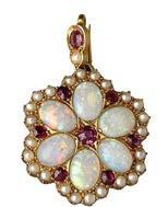 A LATE 19TH CENTURY GARNET PENDANT, of target design, set throughout with vari-cut garnets, mounted in silver and gold, (one garnet de cient), length 8.5cm. £200–£300,