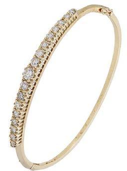 A LATE 19TH CENTURY DIAMOND BANGLE, the hinged bangle set to the front with three old brilliant-cut diamonds, with granulation and ropetwist decoration, stamped ‘15CT’, inner dimensions 4.6 x 5.5cm. £400–£600