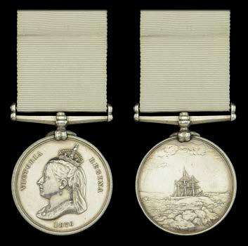 JJo ohhn n LLo onng g was born in Douglas, Co. Cork, in December 1838. He joined the Royal Navy as a Boy 2nd Class in January 1854, and advanced to Petty O cer 1st Class in October 1872. He served with H.M.S. Topaze from October 1872 to July 1874, and from April 1875 to May 1877 (awarded L.S. & G.C. in May 1877). Long was shored pensioned in August 1877.