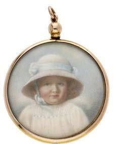 PENDANT, the glazed portraits each depicting an infant child in early 20th century dress, painted on ivory, mounted in gold, pendant diameter 35mm. £150–£200