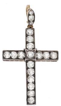 AN EARLY 19TH CENTURY SAPPHIRE CROSS PENDANT, the Latin cross composed of six mixedcut sapphires in closed-back settings, mounted in silver and gold, length 38mm £500–£700