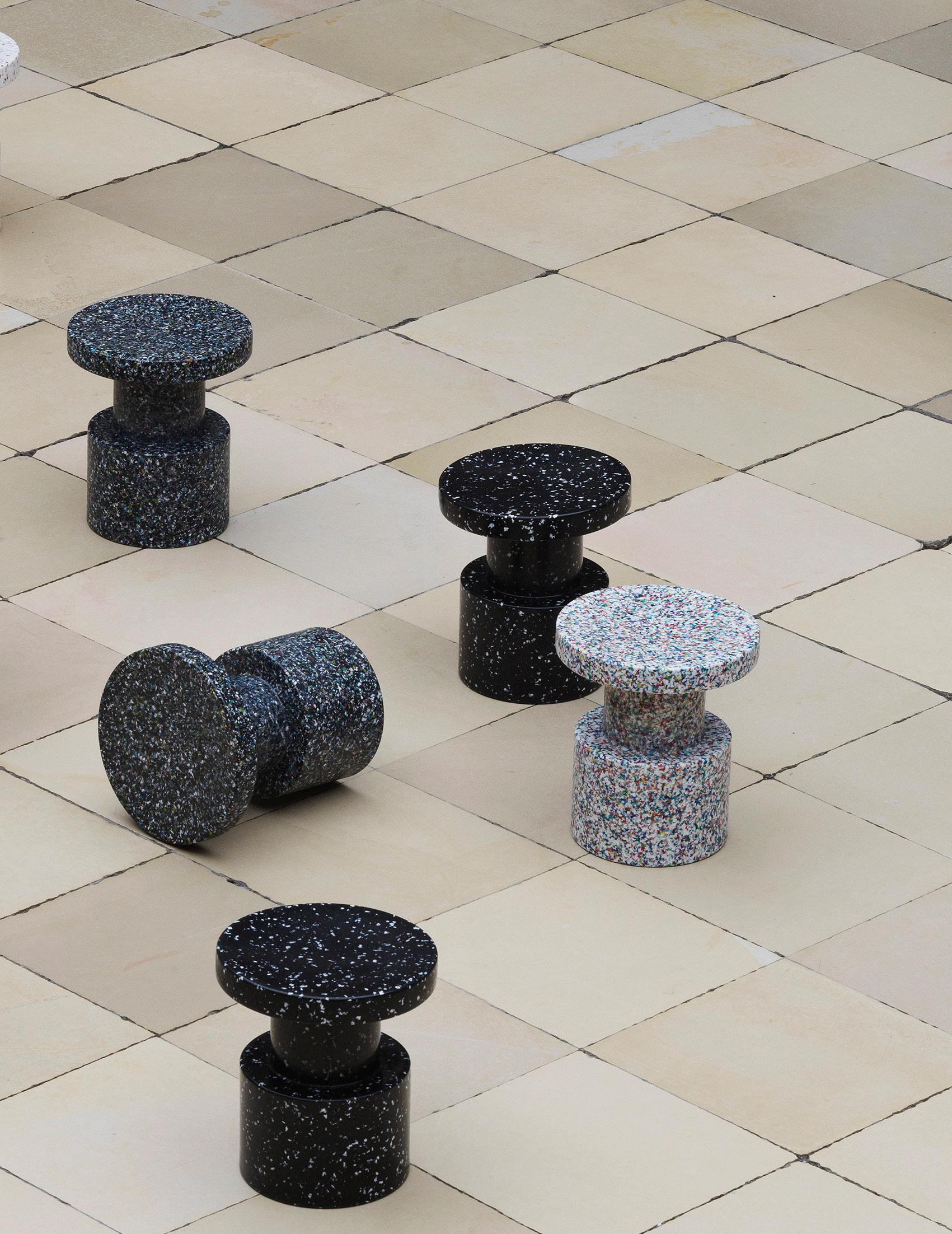 Simon Legald Head of Design, Normann CopenhagenUsing Normann Copenhagen’s signature design aesthetic of minimalistic lines with a playful twist, the Bit collection boasts a straightforward, utilitarian expression that contrasts with a distinctive pixelated surface made up of small bits of 85-95% recycled plastic. At the production facility, plastic waste is shredded, and the granulate is sorted into different colors to match each Bit Stool color variant. Due to different origins of the plastic waste as well as the particular production method, every Bit design is a bit unique.