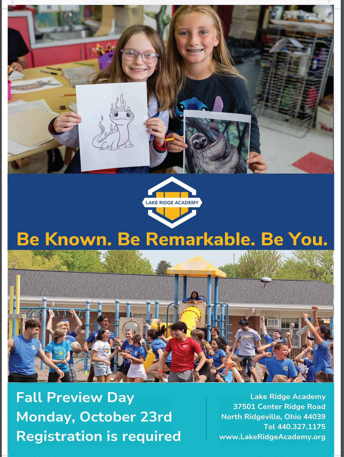 Lake Ridge Academy is an independent kindergarten through grade 12 college preparatory school. Strong academic programs, engaging faculty, and an 8:1 student-to-teacher ratio creates an educational environment that fuels a student’s passion for learning. Lower School students learn to think critically through a rich, hands-on curriculum that connects them to the natural world. Special emphasis is placed on social-emotional learning and cultural appreciation through world language classes. Their fall K-12 preview day will be Mon. Oct. 23. Register online lakeridgeacademy.org