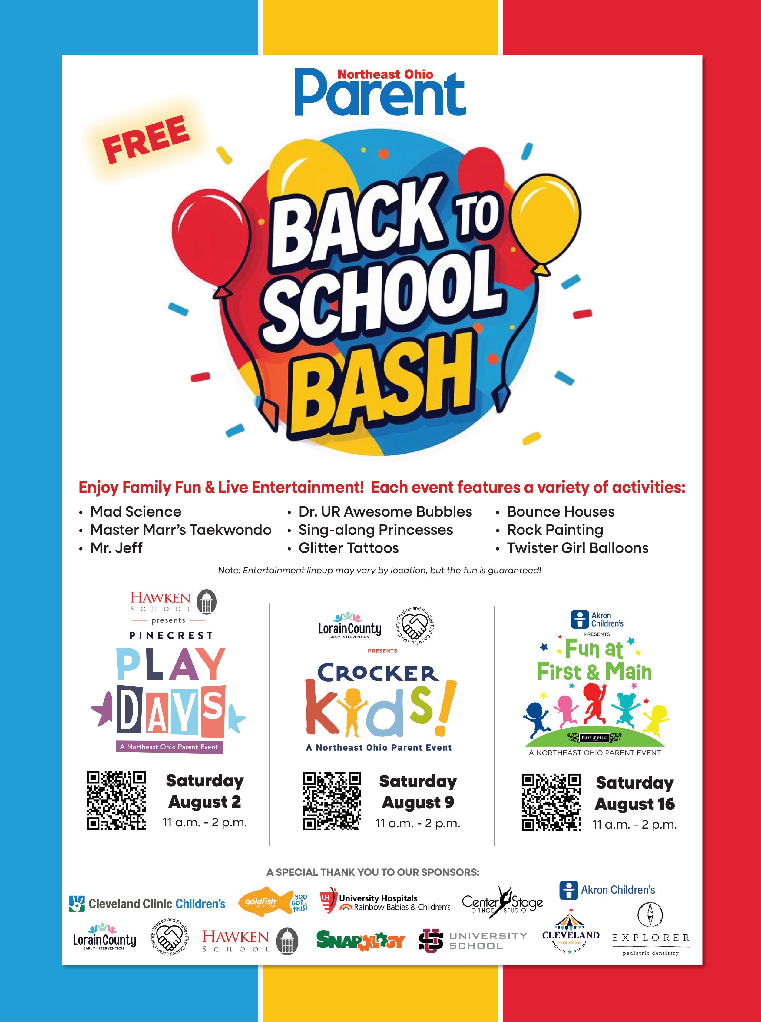 For the Northeast Ohio Parent crew, we are still celebrating the season with our Summer Event Series in August. The “Back to School Bash” is about preparing for the next steps, but also celebrating summer’s end. Check out NortheastOhioParent.com for details.