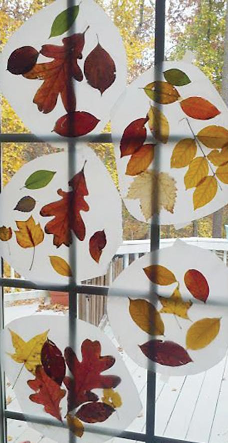 Leaf Suncatchers - Press leaves between two sheets of wax paper and iron them on low heat (with a towel between the iron and the paper) or place between two sheets of contact paper. Cut into shapes such as hearts and circles and hang them in a sunny window. The light filtering through creates a stained-glass effect.
