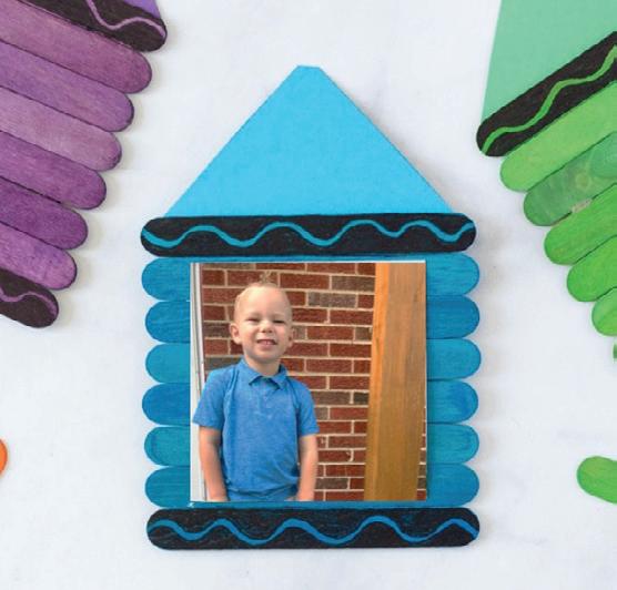 • Cut out a triangle from a coordinating piece of card stock. Snip the very tip off to give it a more crayon like look and attach to the back of the frame.