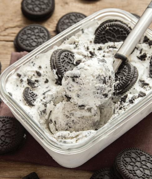 5. Pour into a freezer-safe dish and top with more sandwich cookies (optional).