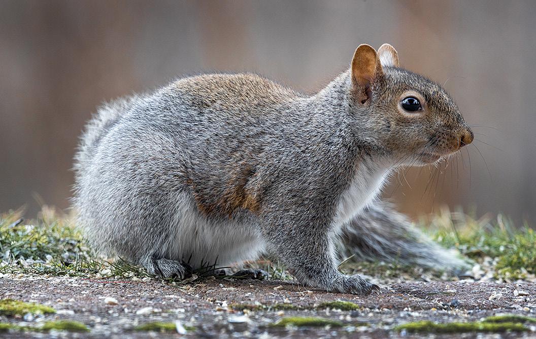 The name Eastern Gray Squirrel confuses people who expect the species to create only gray-colored squirrels. But Dr. Tomko says this squirrel species can look gray, black, white or even pinto (spotted) but they are all genetically gray squirrels.