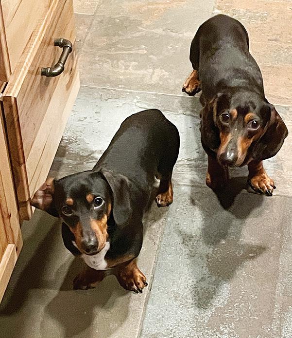 Slinky and Max are dachshunds who enjoy sunshine and its warmth as much as possible. They can be heard barking at a squirrel or wild turkey. Slinky (the one with white fur on his chest) likes to annoy big brother Max whenever he can and follows Michael everywhere. Nothing makes Max happier than hanging out with Mercy. On night walks, you may spot them by their reflective coats.