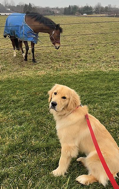 Sandy is a 1-year-old golden retriever whose walks are incomplete without a stop to say hello and admire the horses at Walden Farms.