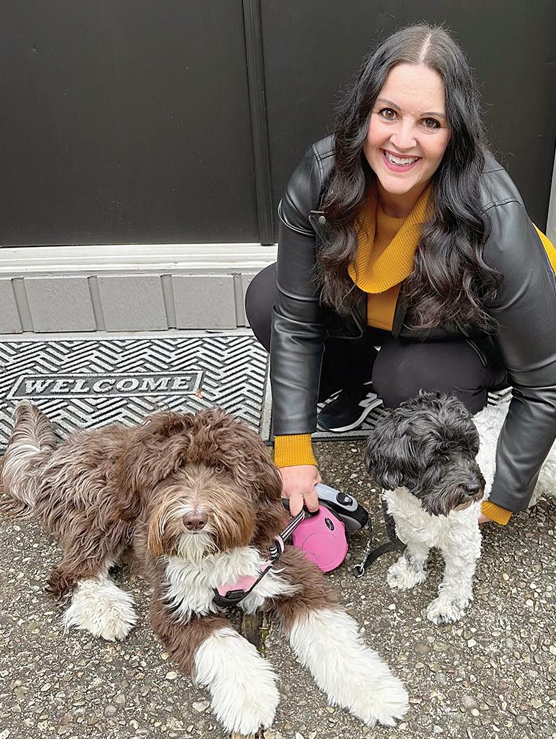 Miriam with dogs, Sandy, 8-month-old Aussiedoodle; and Moose, 5-year-old Havanese.