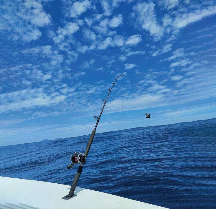 Lukehashishandsfullbaiting,andunhooking fishforthenextfewhours!Ononeparticular tripthisseason,Luketellsustheycaught14 differentspecies.Othercommontablefish encounteredonhistripsincludetrevally, JohnDory,gurnard,redsnapper,Kingfish andhāpuka,withmarlinandtunaalso availableduringthesummerseason.