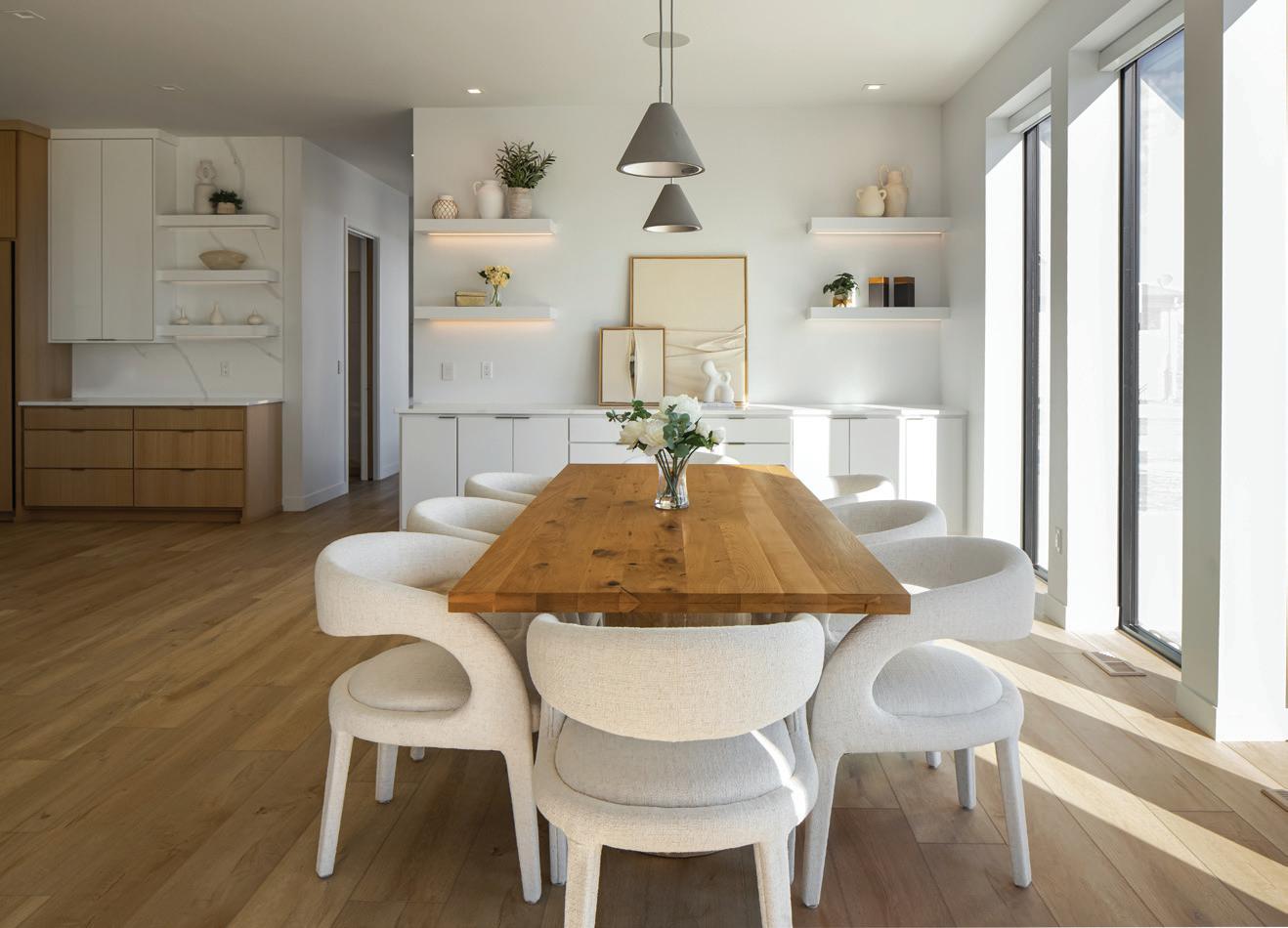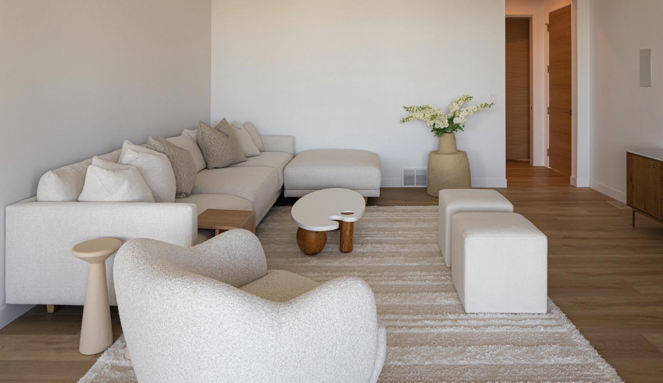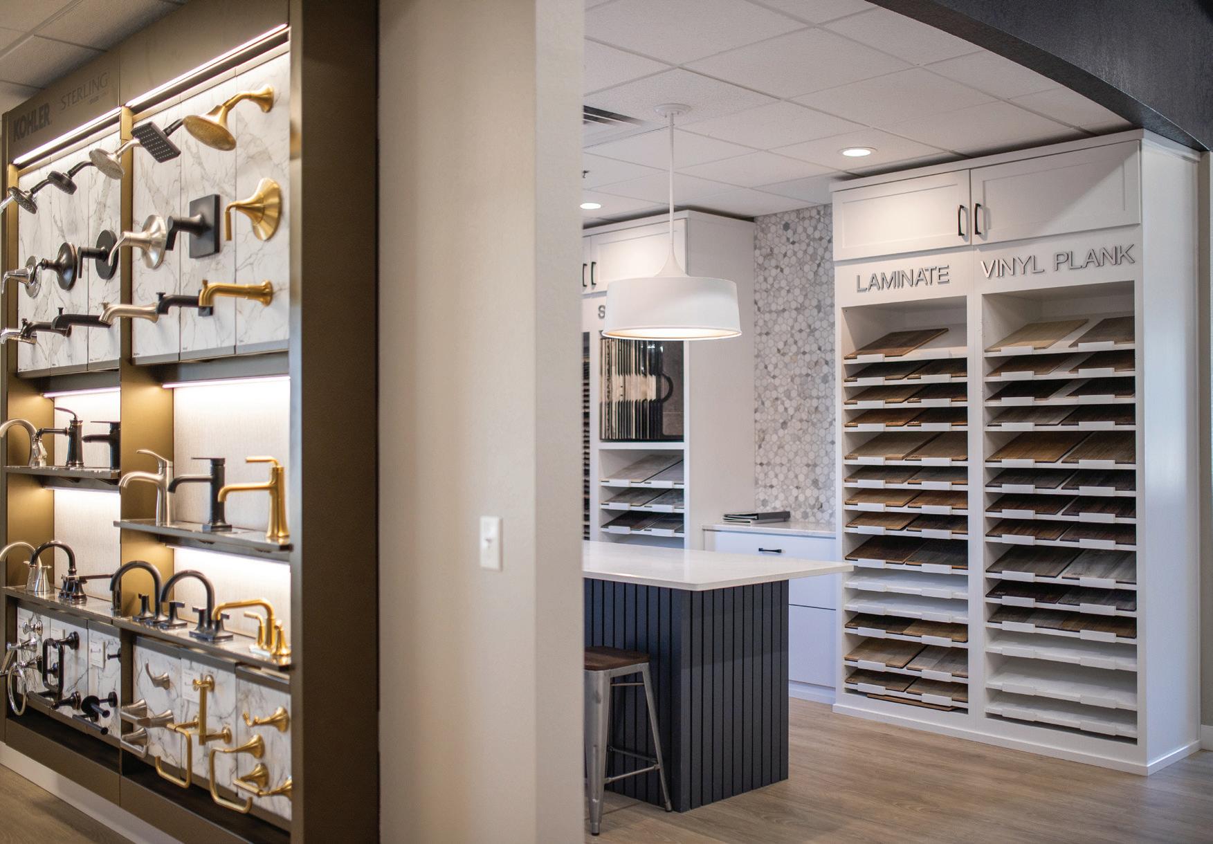 of finishes and samples. “I get super overwhelmed when I walk into a space that’s completely cluttered, so we have a lot of our samples tucked away,” explained Wendt. “In our meetings, we’ll get a good feel for the client and what they like, then start pulling out what we need to achieve their vision for their new home or space.”