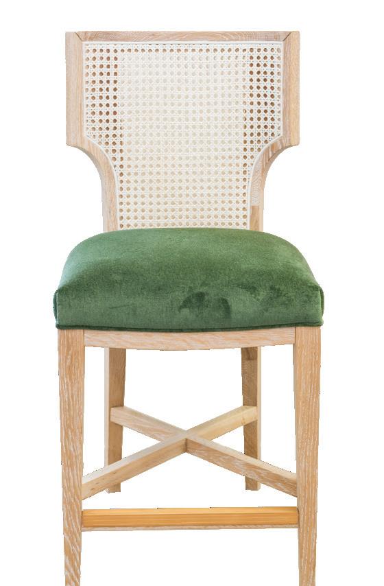 The Crown Jewel makes a statement, either fully upholstered or with a cane back, showing off its alluring curvature from every angle. This comfortable and functional stool—a new addition to the beloved Carleen collection of dining chairs—is a refined and classic update to the traditional wingback design. Ask about the variety of wood bases and colors of upholstery.