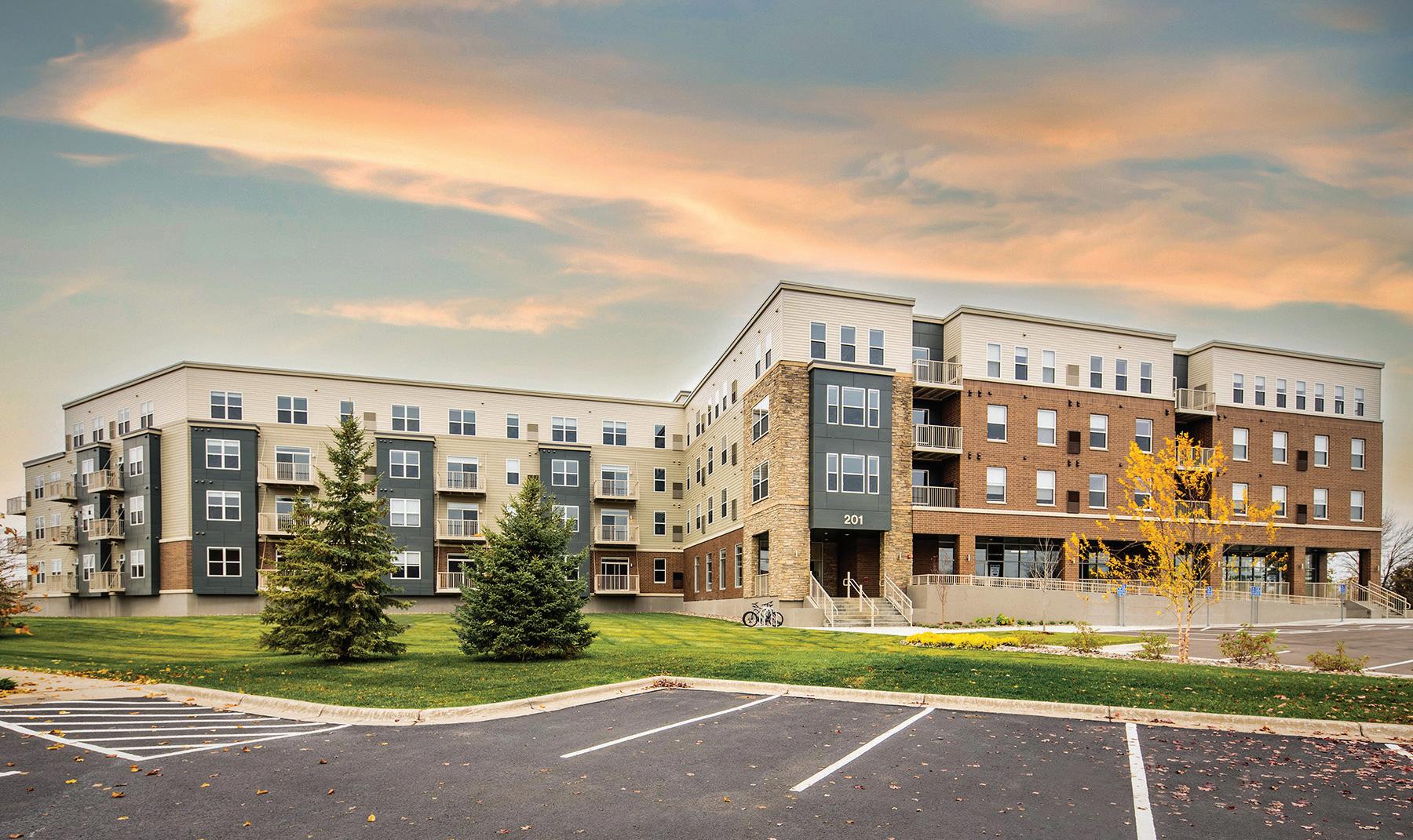 At Sand Creek Flats, JLG invited tenants to live a healthy, active, and well-connected lifestyle that reflects the soul of a small town and the ambition of a thriving city. Built at the edge of a bluff overlooking acres of unspoiled wetlands, Sand Creek Flats bring in-demand multi-family and luxury living that renews conservation and appreciation of the native Minnesota landscape.