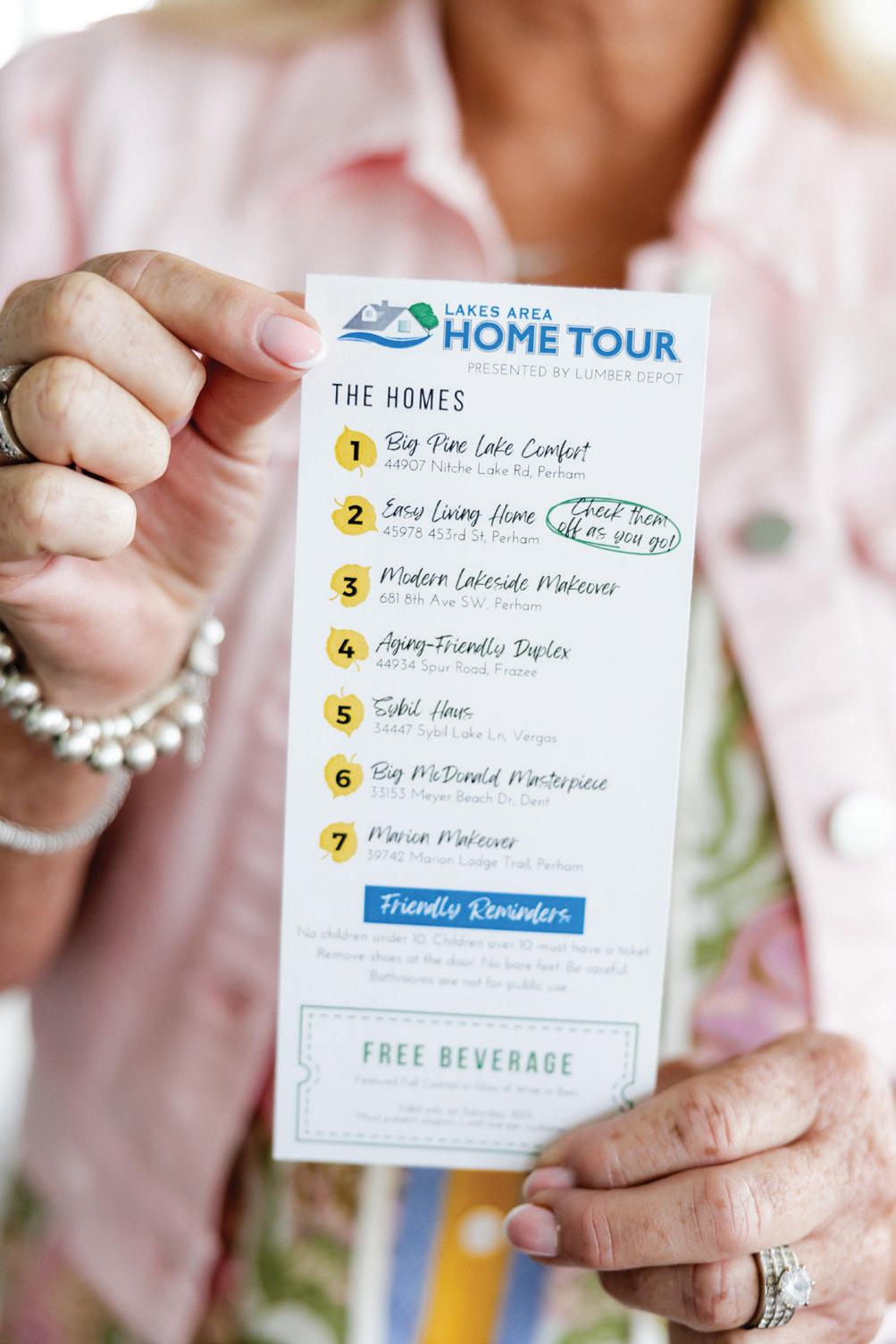 The Lakes Area Home Tour, which ran successfully for several years, was originally hosted by the 549 Family Foundation as a fundraiser to support the Perham School District. “Like many community events, it was put on pause in 2020 due to the pandemic, and it hasn’t returned—until now,” explained Dreyer.