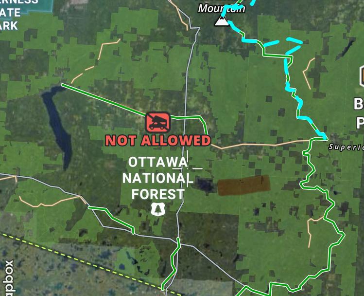Particuarly troubling is the info for the Ottawa National Forest, seen in the photo at bottom left As of the date of publication, OnX is showing NOT ALLOWED even though the USFS website for the Ottawa clearly states that dispersed camping IS allowed. We think that this designation is faulty and is unfortunate since some of our community members nearly had heart attacks upon seeing that. Hopefully that is just the result of not having the data but we think no data is better than false data, which is what the app suggests. Look for a follow up on this soon. Happy trails!