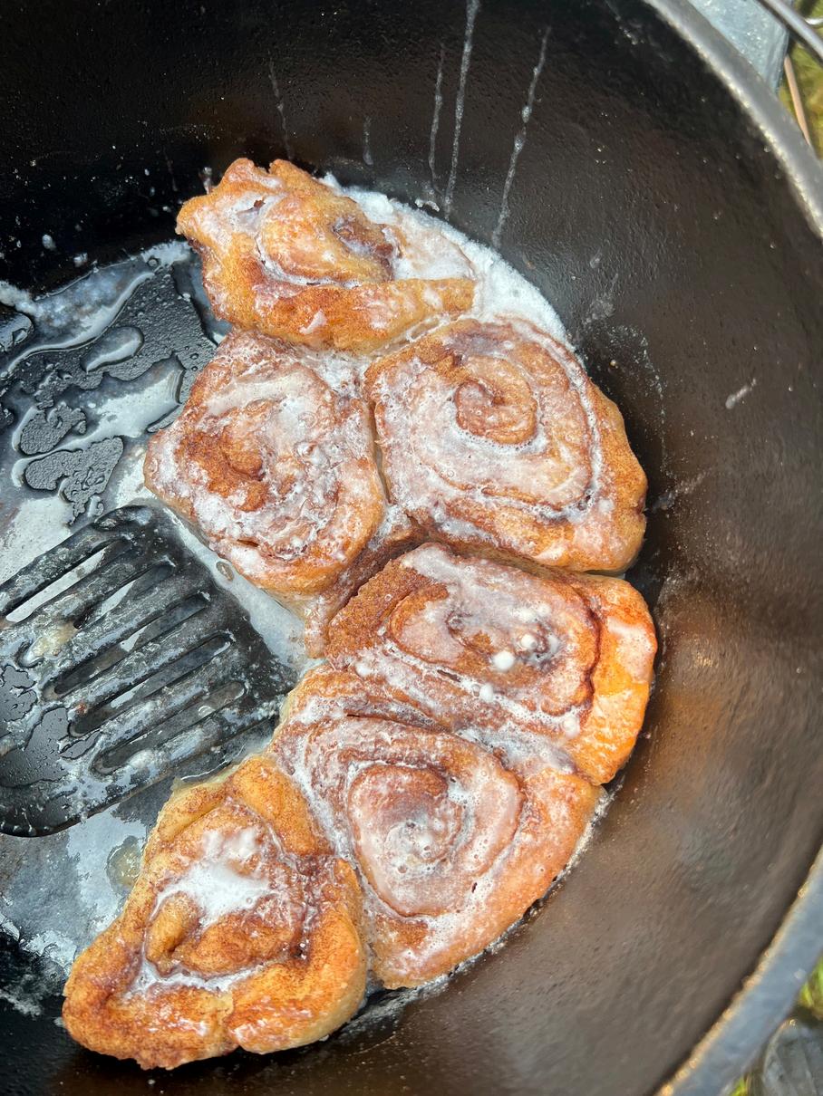 Saturday morning we enjoyed delicious cinnamon rolls baked in a dutch oven by Jason (sooooo good!) and then met at Wolf River Roots for coffee and to plan our day and hand out goody bags. A couple of attendees took advantage of the nearby Nicolet Roche mountain bike trail while the rest of us split up into groups. A few headed for the new Langlade County 4x4 trails (blue, medium trails rated "spicy" by our testers, lol.) The rest of us followed Jill & Chris of 1941 Adventures on a two-track, gravel road (cough, cough) and pavement sight-seeing tour (amish store for snaaaaaacks, True North Outpost for fun and then seeing an awesome waterfall.)