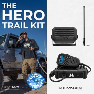 The Explorer and Hero Trail Kits are built for serious off-roaders who need maximum range in the most demanding environments These include Midland’s Canyon Edge™ 3dB Gain Bull Bar Antenna System, a heavy duty, high-gain antenna that ensures clear communication for the toughest adventures.